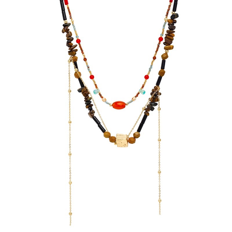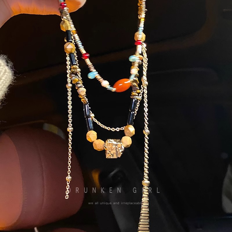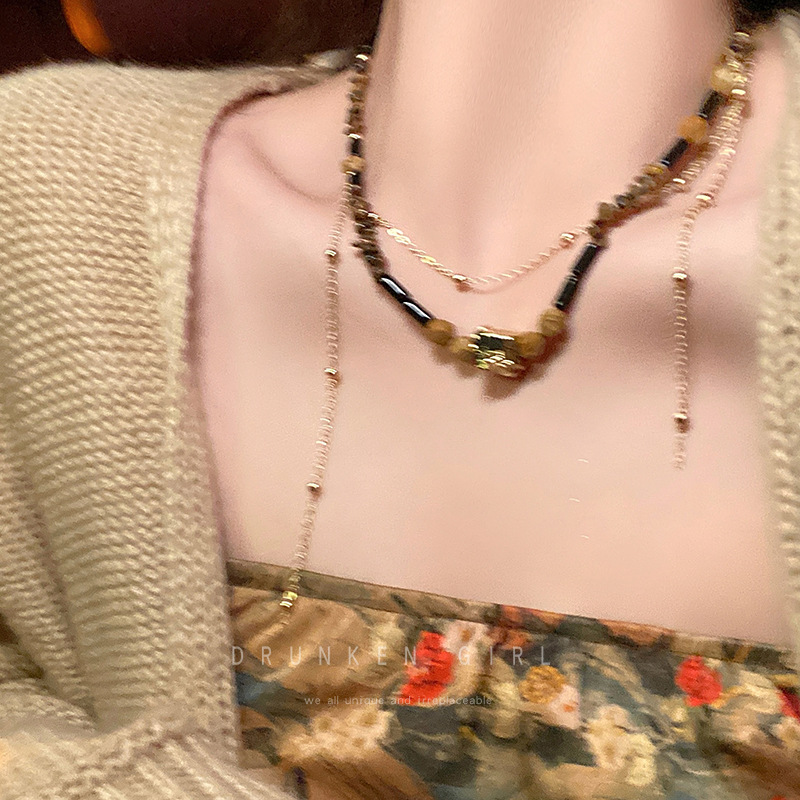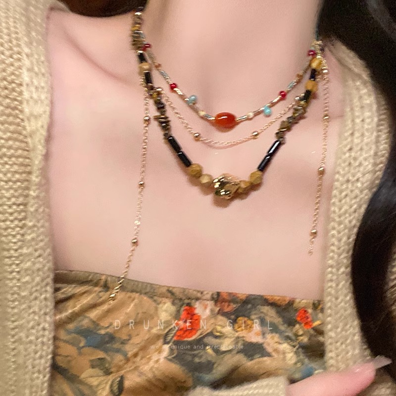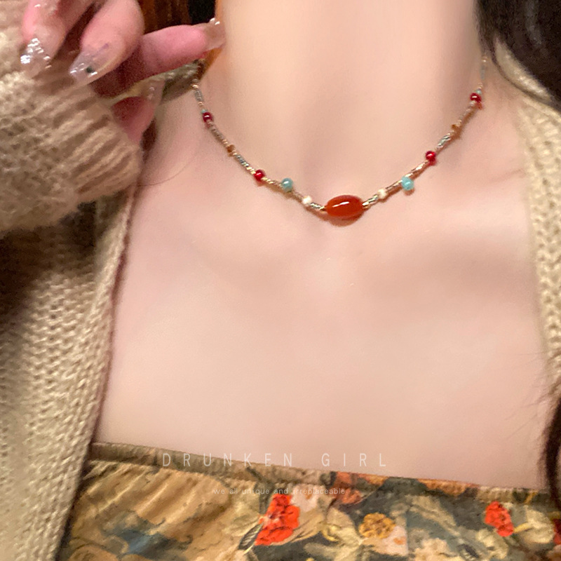 敦煌新中式天然石玛瑙串珠项链女复古民族风小众毛衣链国风锁骨链