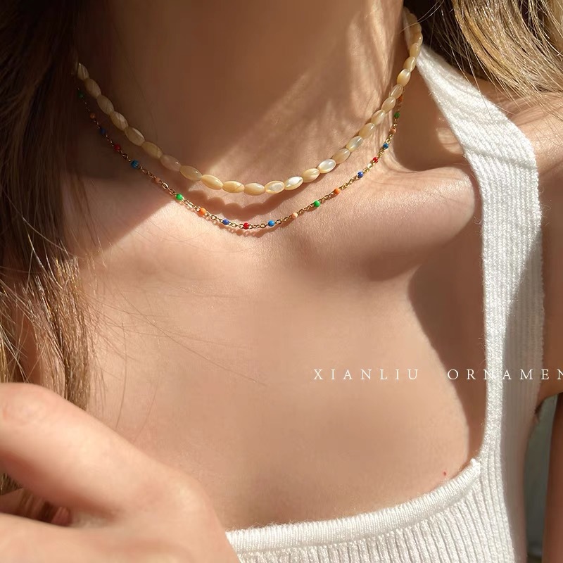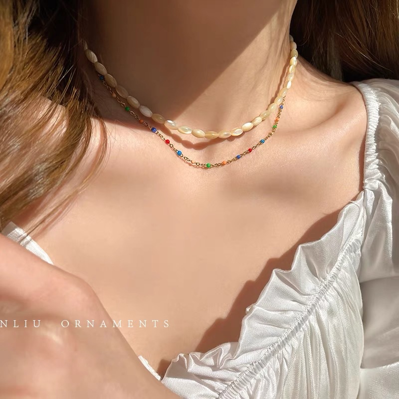香槟色 贝壳米珠项链