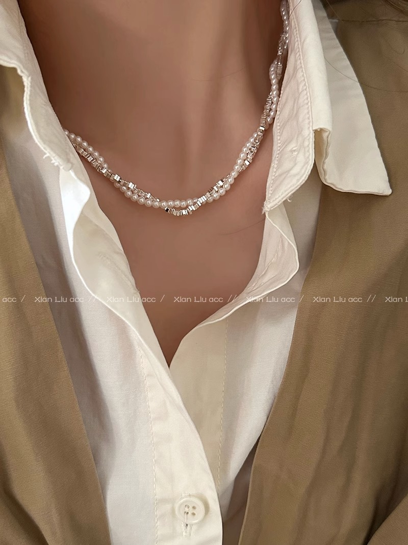 双层叠戴颈链碎银子珍珠项链女夏轻奢小众锁骨链新款爆款配饰