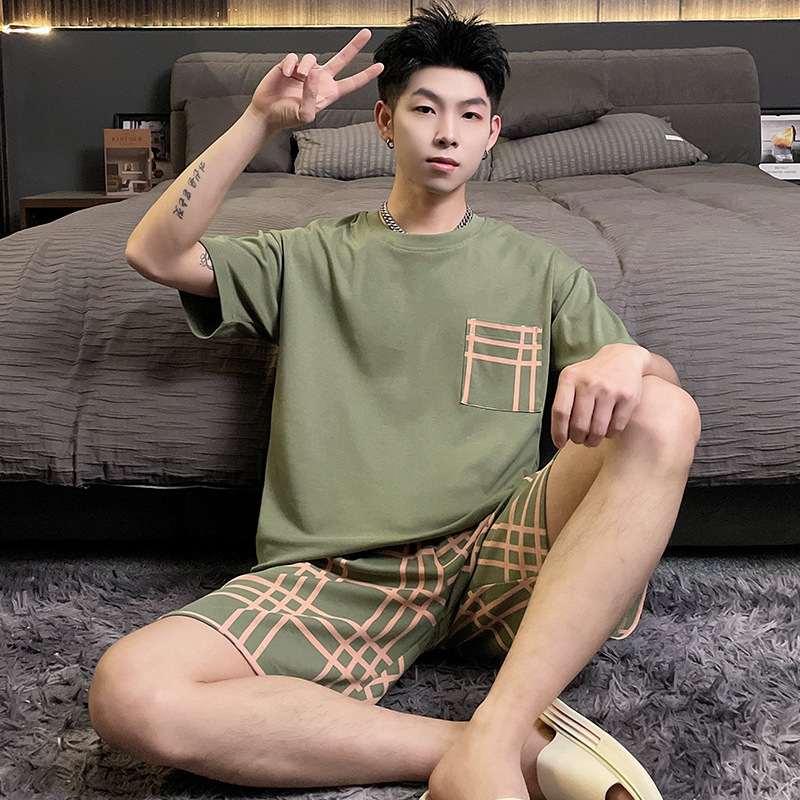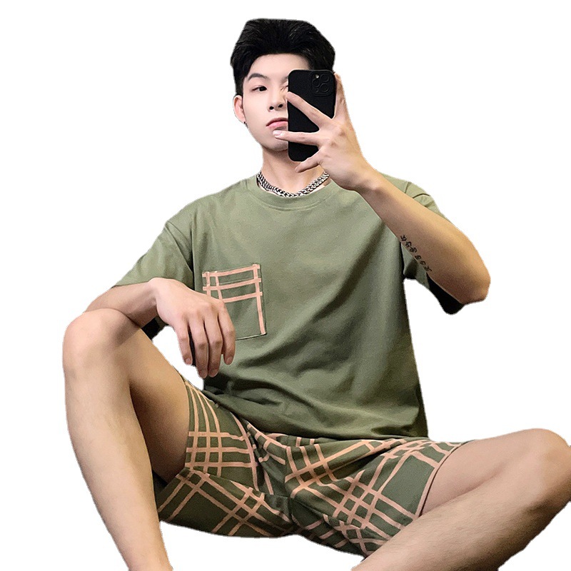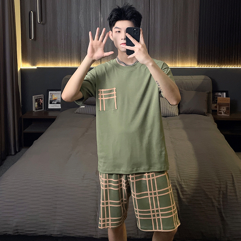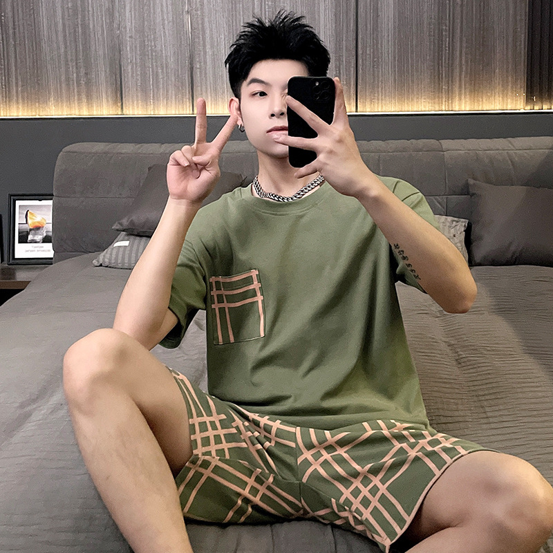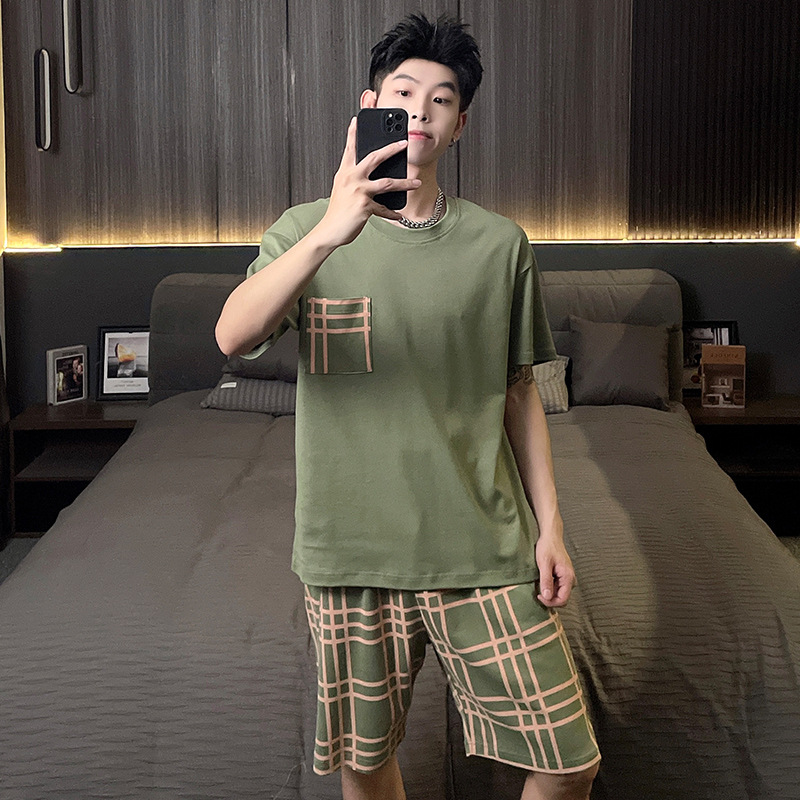男士睡衣夏季棉质短袖短裤薄款夏天男款大码高级感圆领夏款家居服