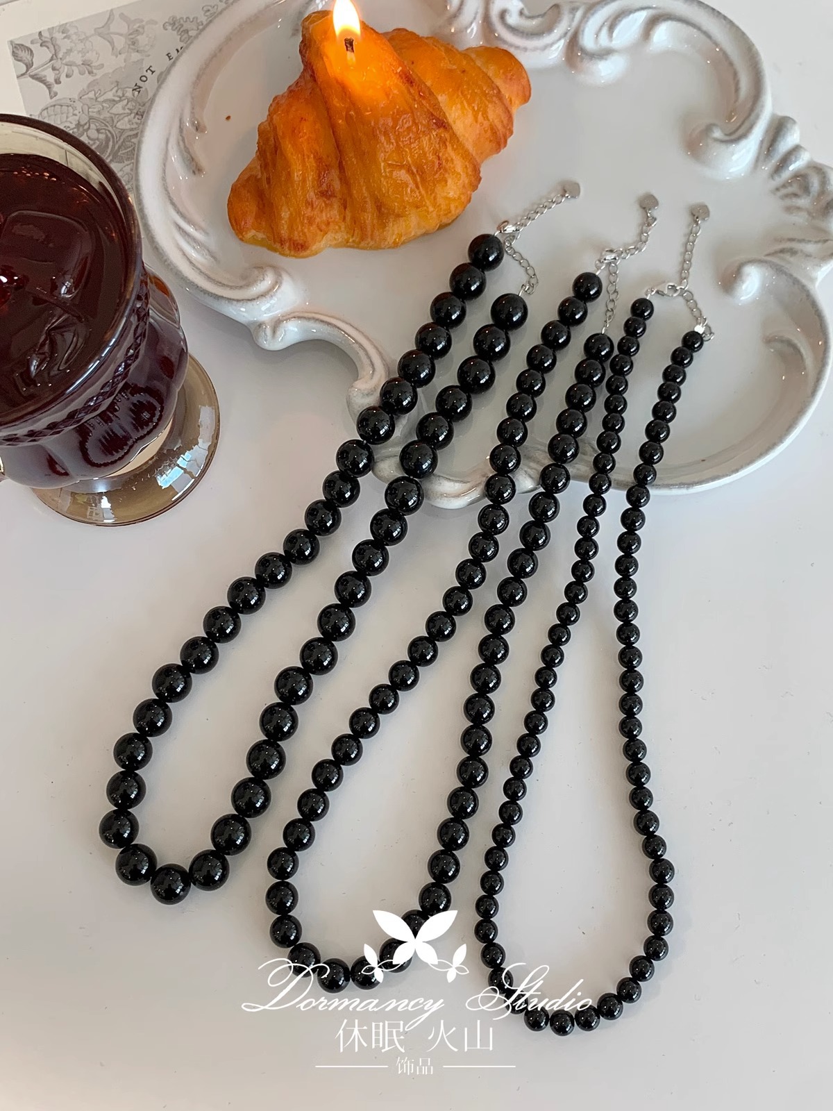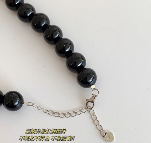 「黑玛瑙」韩国博主fever同款7 A级天然黑玛瑙项链小众轻奢冷淡风