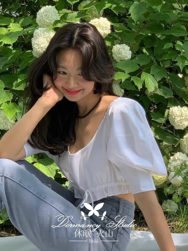 少女感粉色U领短袖上衣女夏季螺纹修身显瘦纯欲风百搭正肩T恤