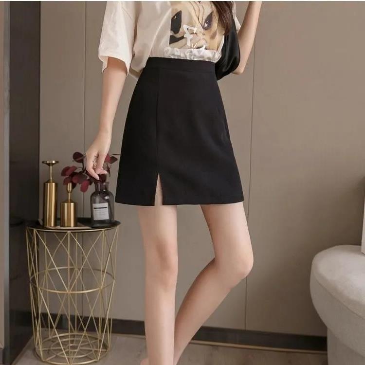 学院风气质开叉包臀短裙女防走光a字裙夏高腰修身显瘦半身裙