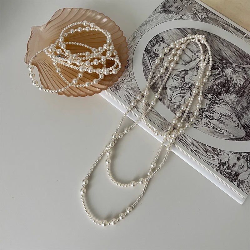 多种戴法 轻奢高品质强光超长款珍珠项链多层叠戴小香风毛衣链潮