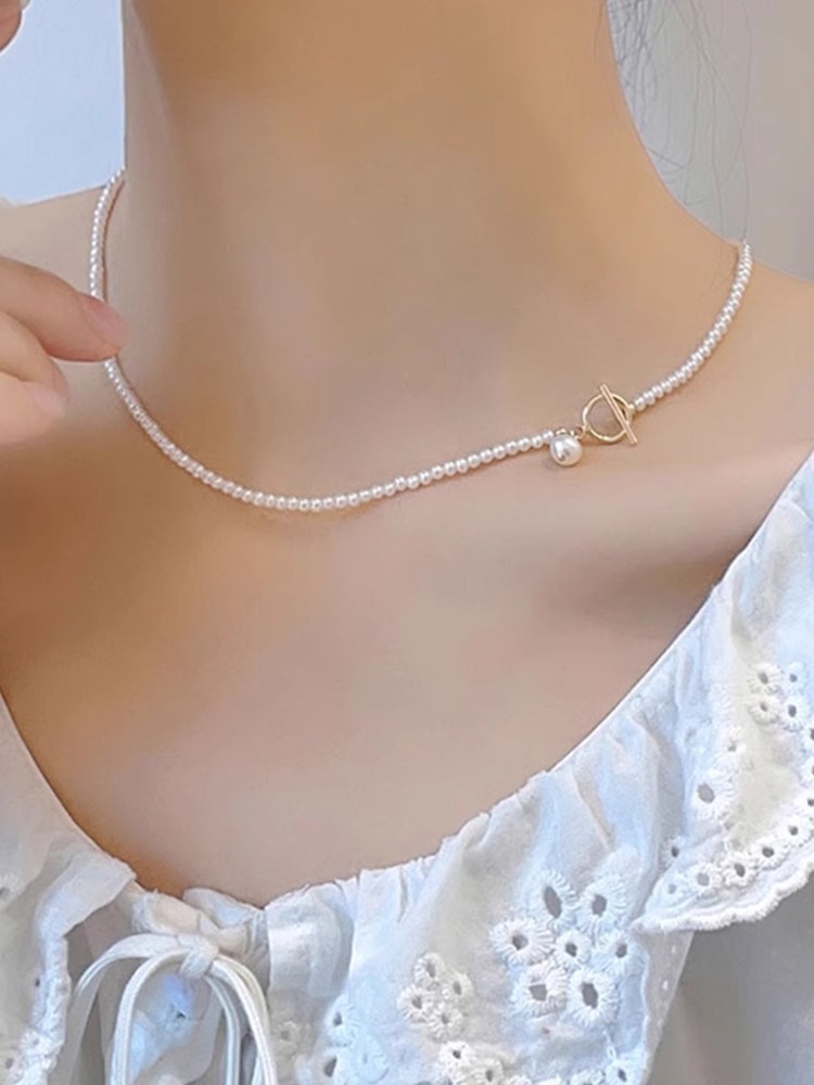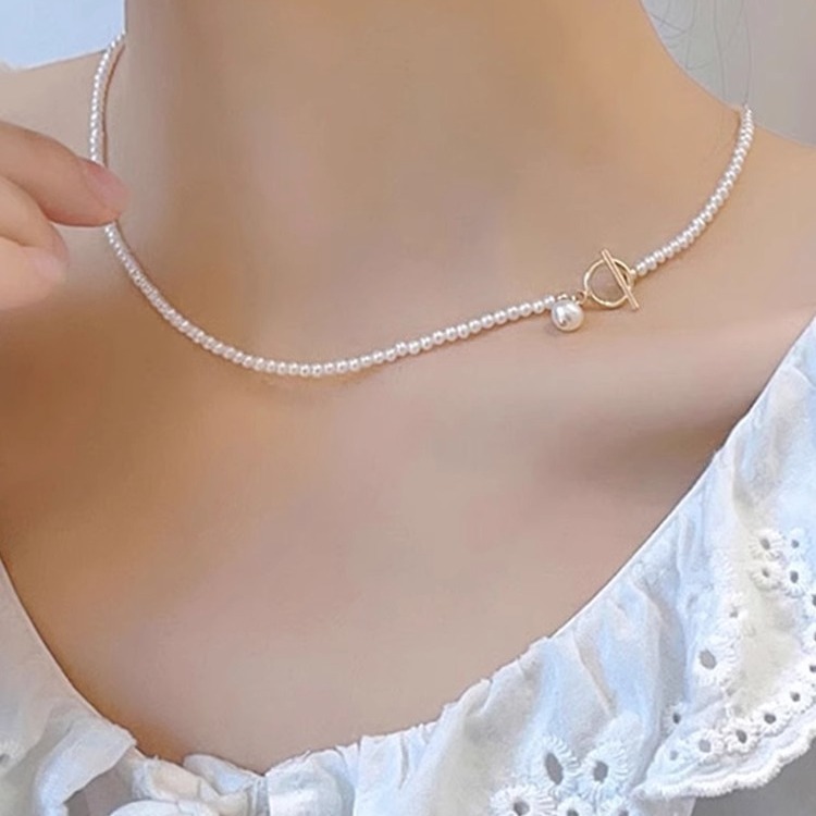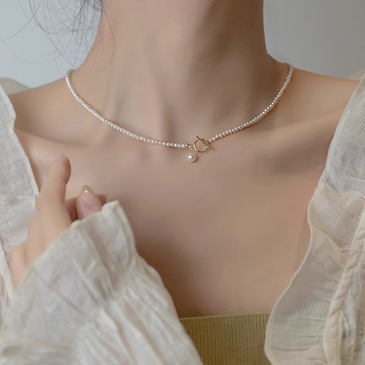 「秀出天鹅颈」小米粒珍珠项链贝珠小众轻奢高级感颈链OT扣锁骨链