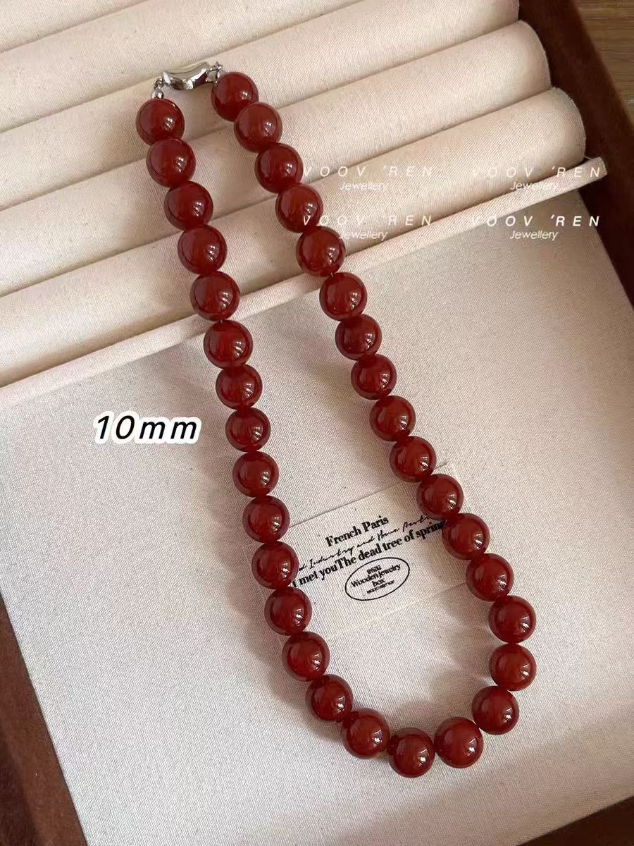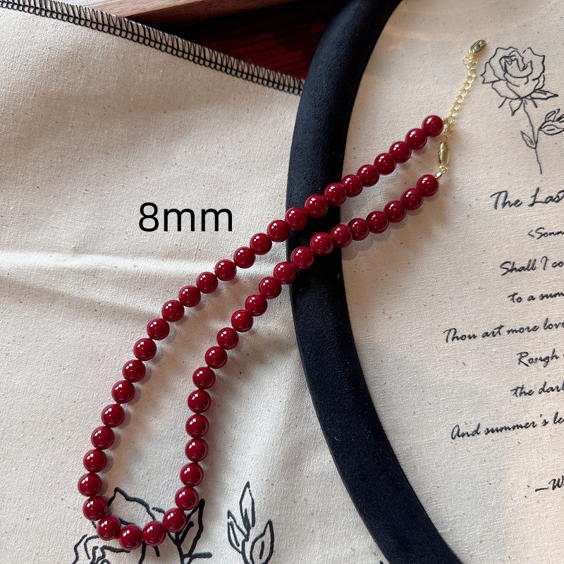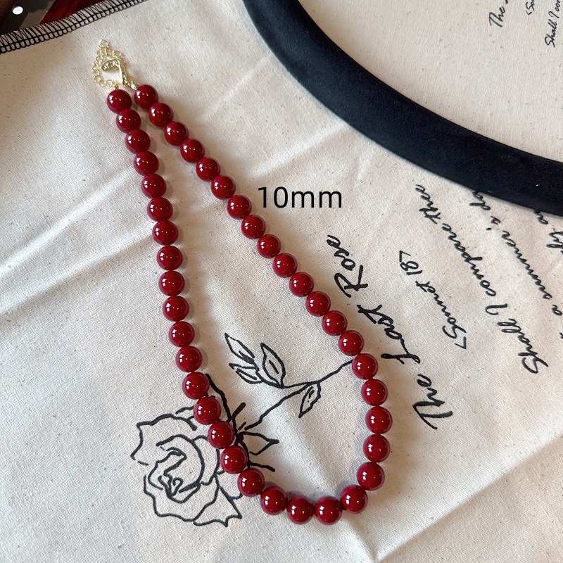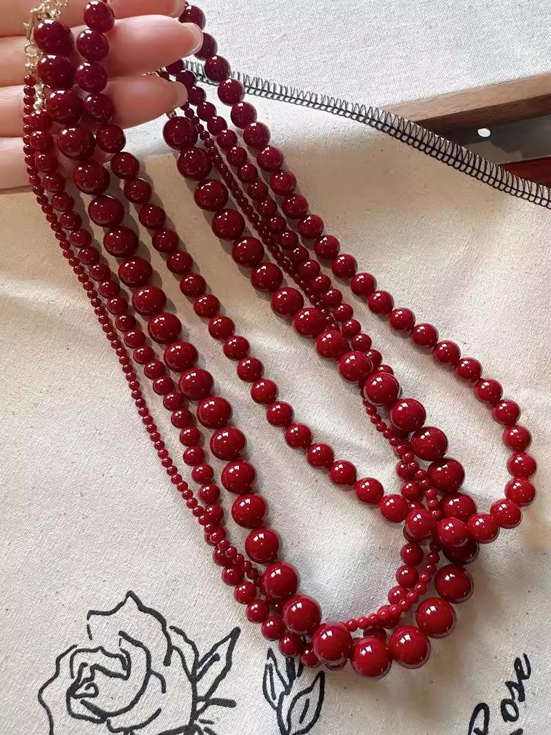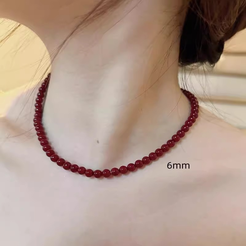 高级感安哥拉红色串珠项链秋冬新款颈链本命年显白复古小众锁