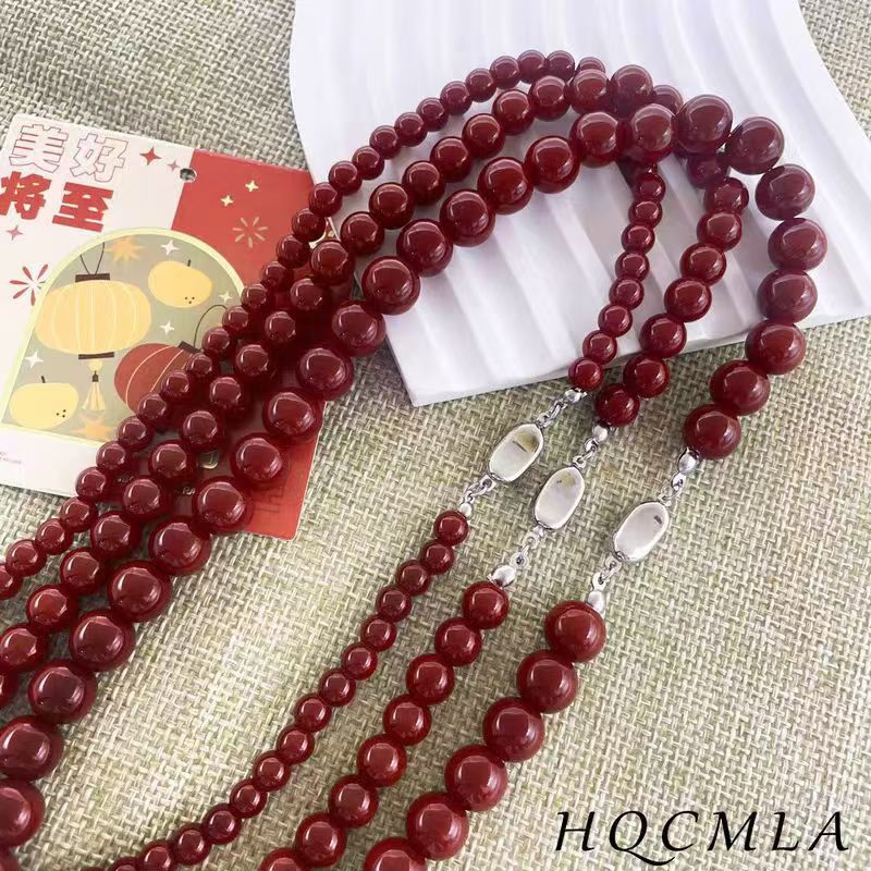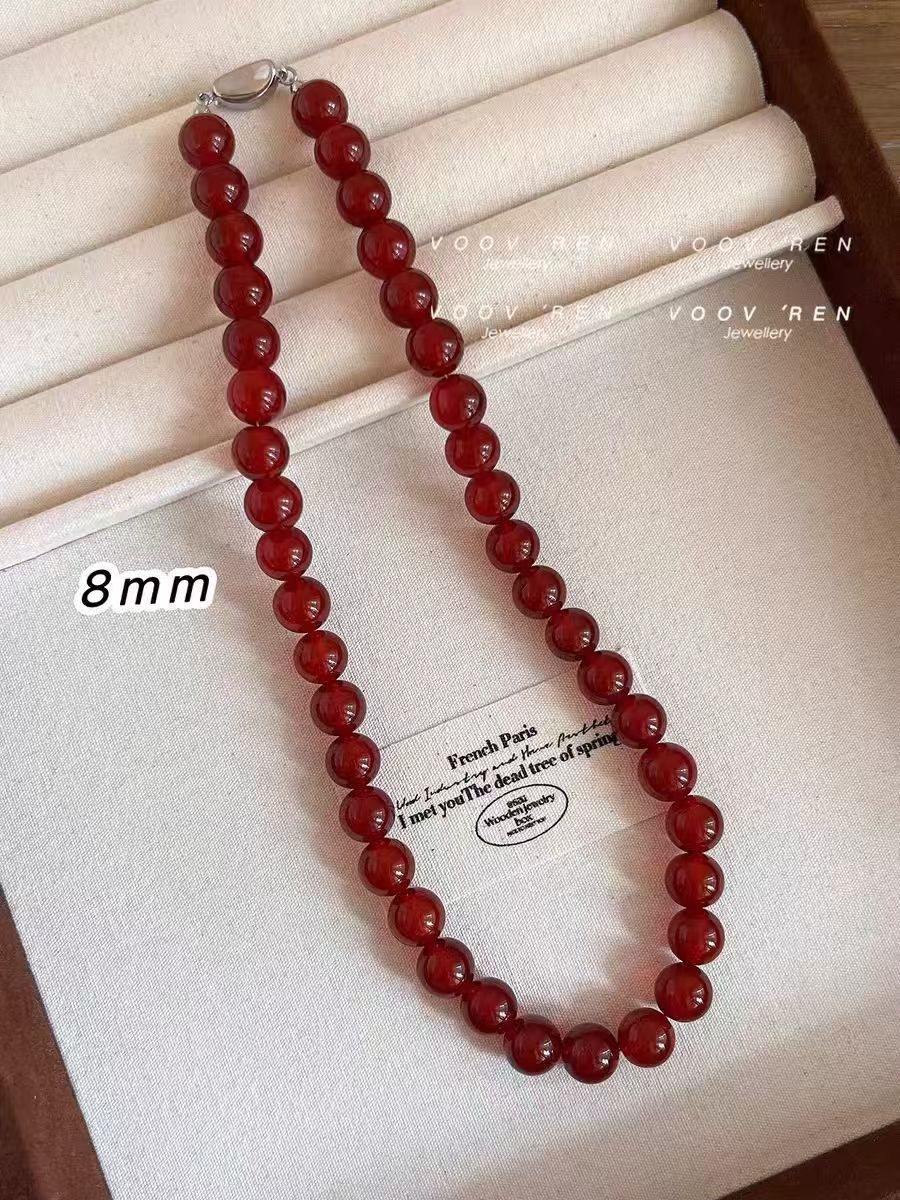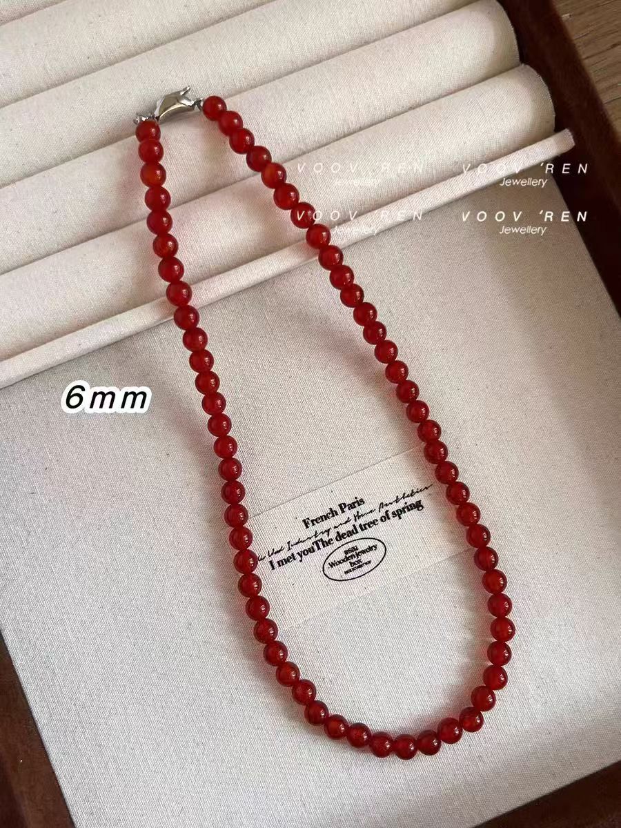 高级感安哥拉红色串珠项链秋冬新款颈链本命年显白复古小众锁
