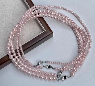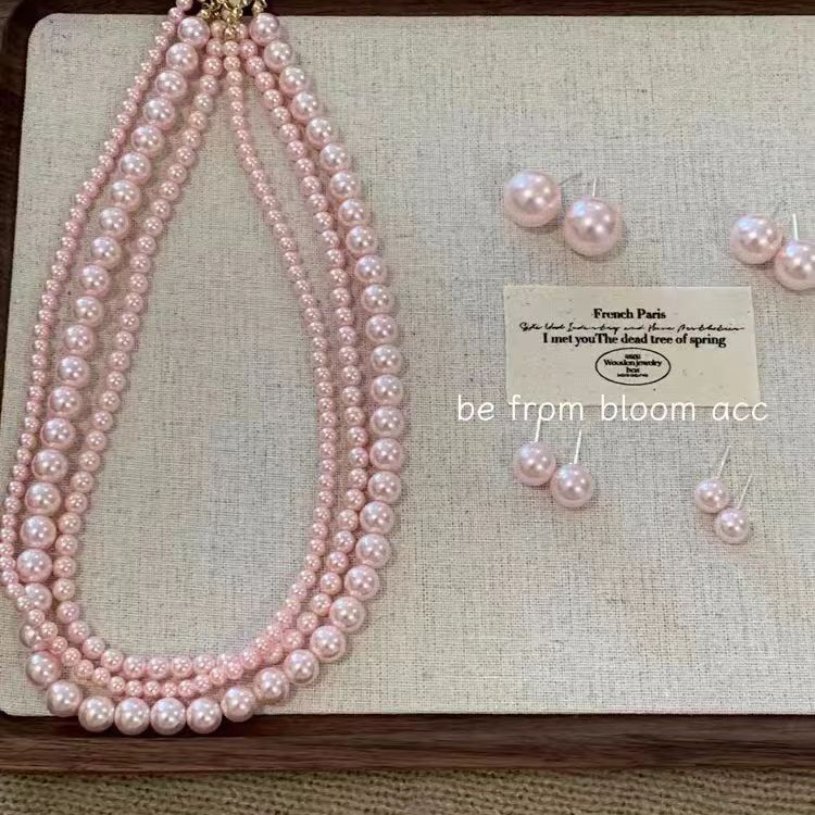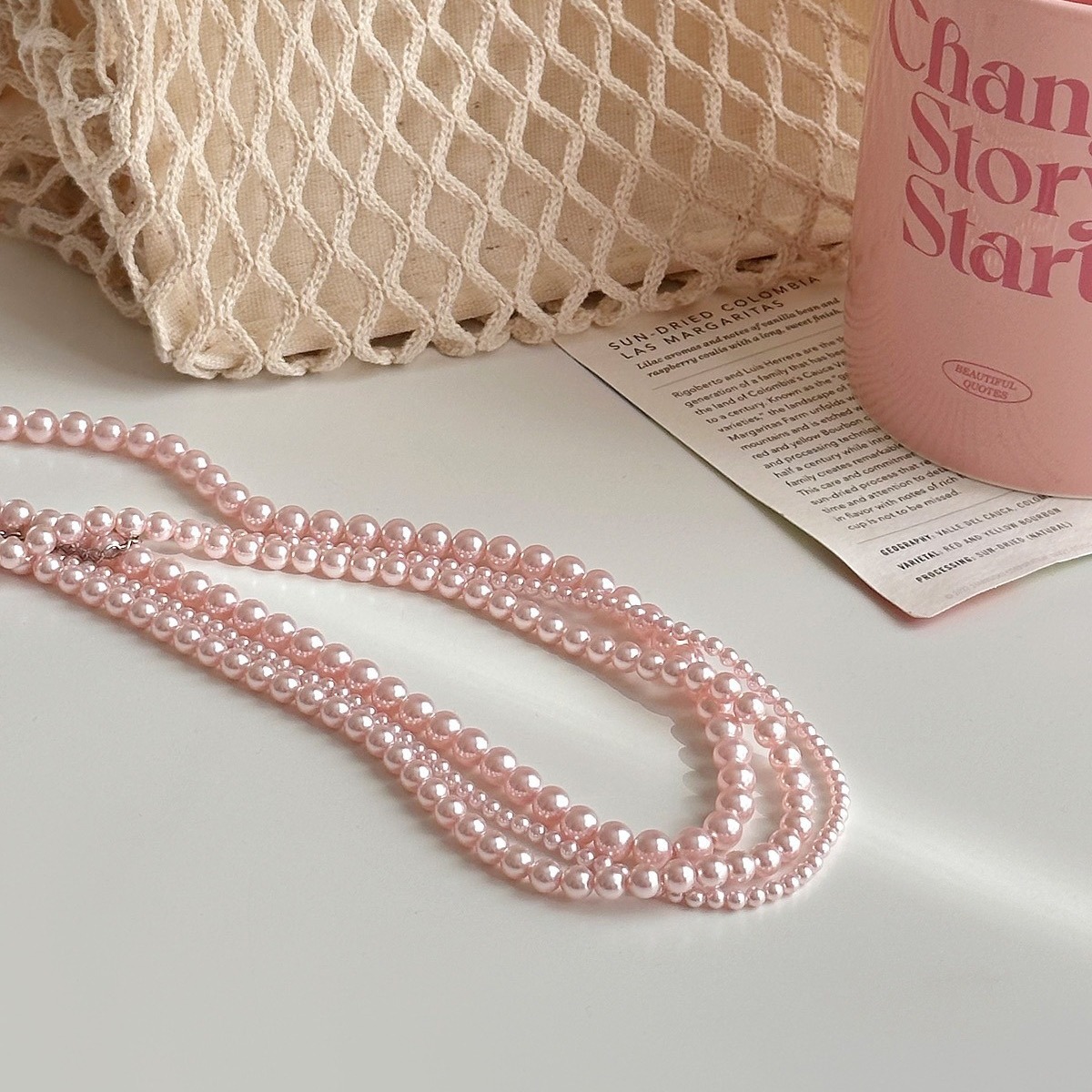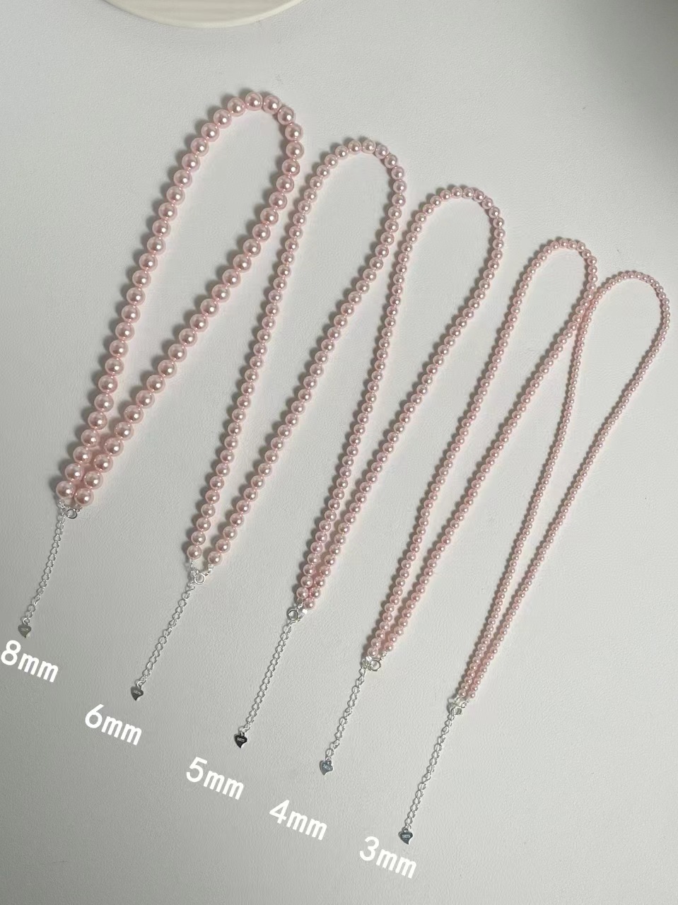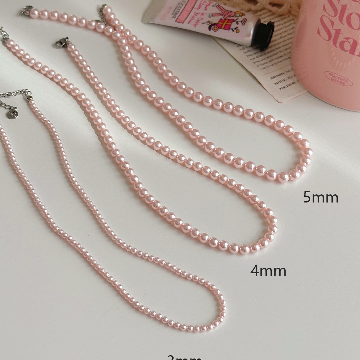 樱花粉珍珠项链甜美气质高级感正圆强光适合春日锁骨链女百搭超仙