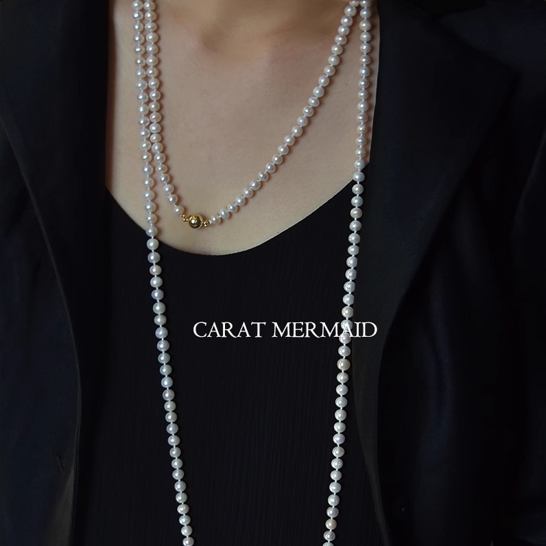 克拉人鱼珍珠长款项链小香风毛衣链配饰长项链双层长
