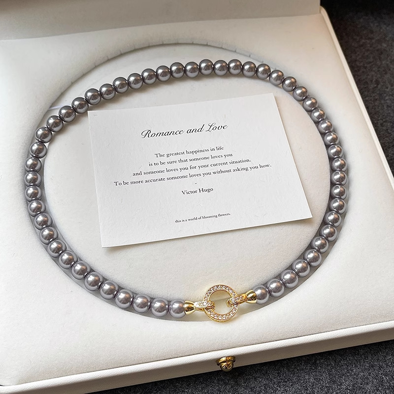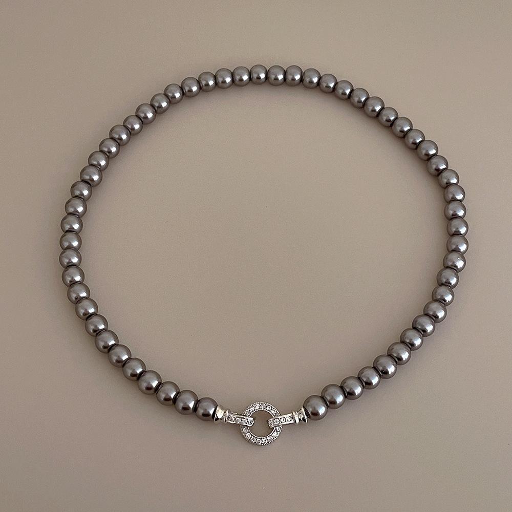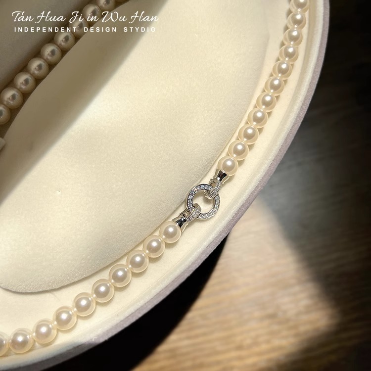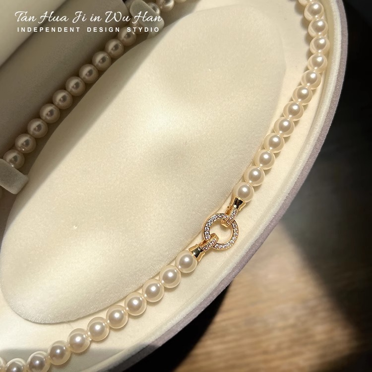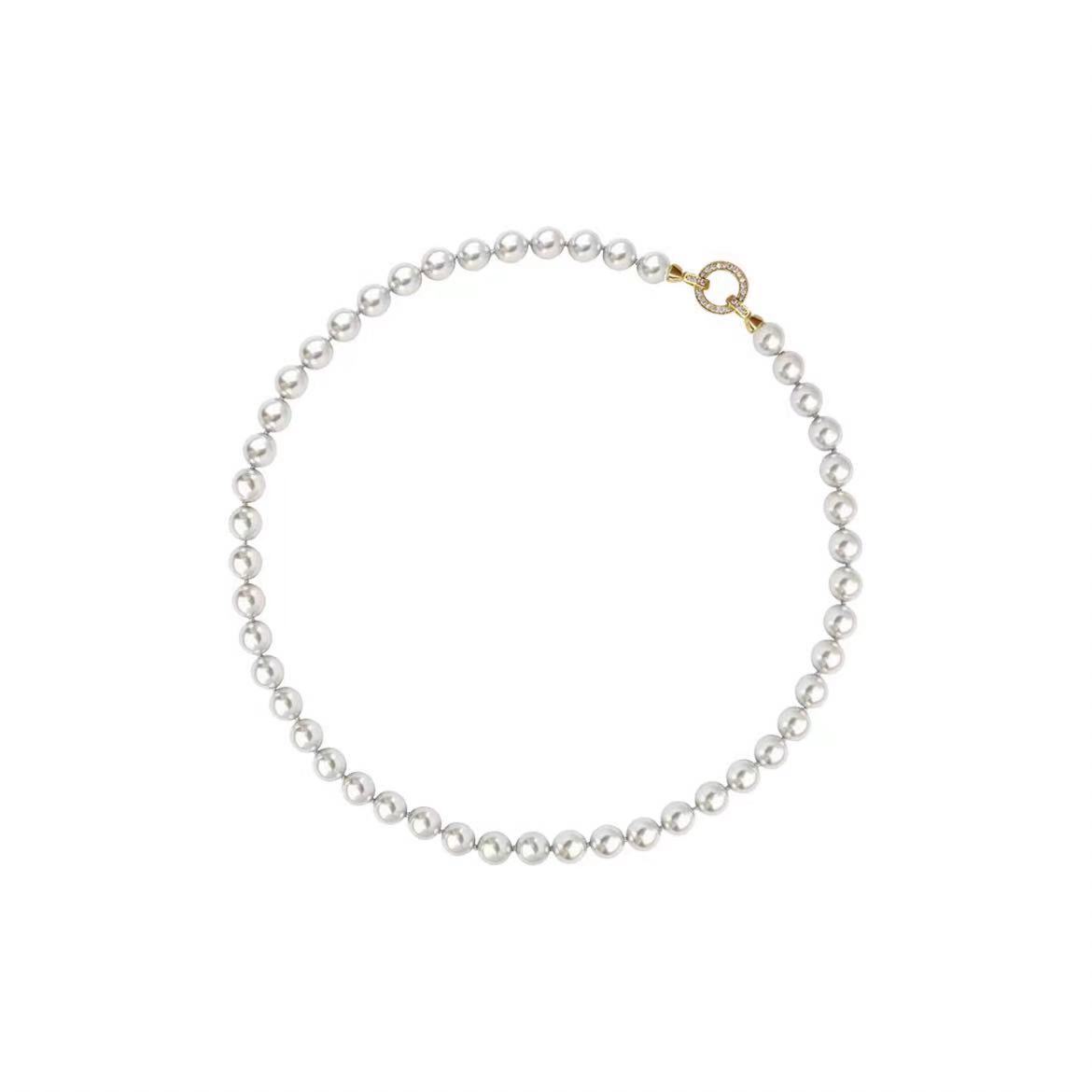倪妮同款大灯泡正圆珍珠项链轻奢小众高级珍珠镶钻首饰钻扣