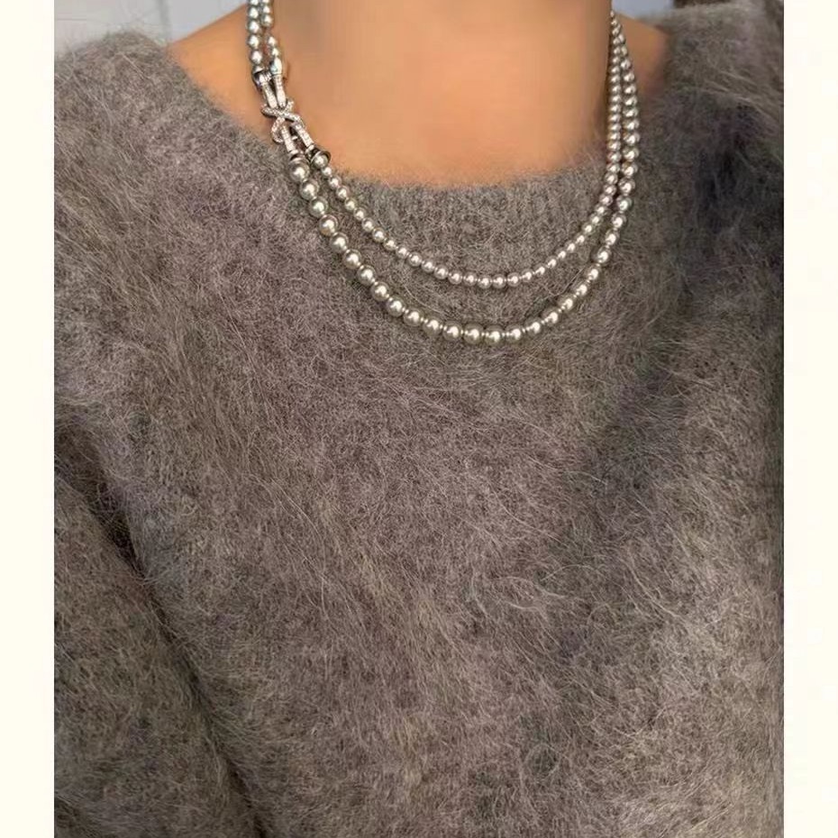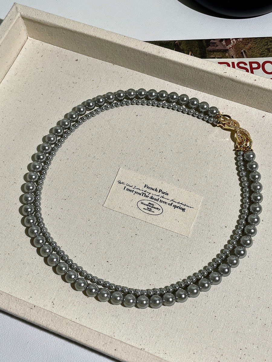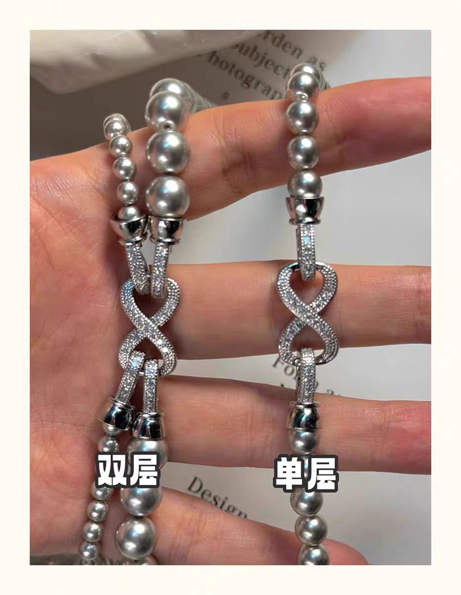 - 【可拆卸】灰色珍珠项链(白金八字扣)4+8mm