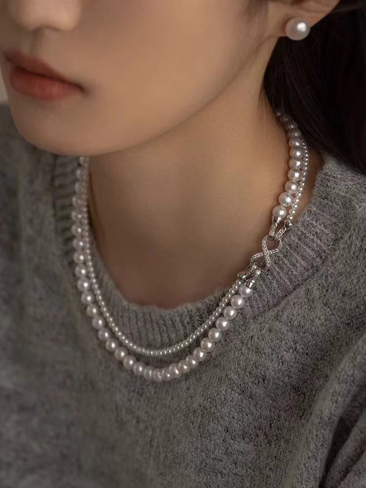 双层正圆强光珍珠项链小众复古叠戴毛衣链轻奢颈链可拆分新款
