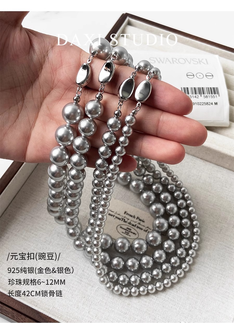 倪妮同款施家真多麻珍珠钛钢元宝扣项链高冷气质铂金轻奢高级感锁