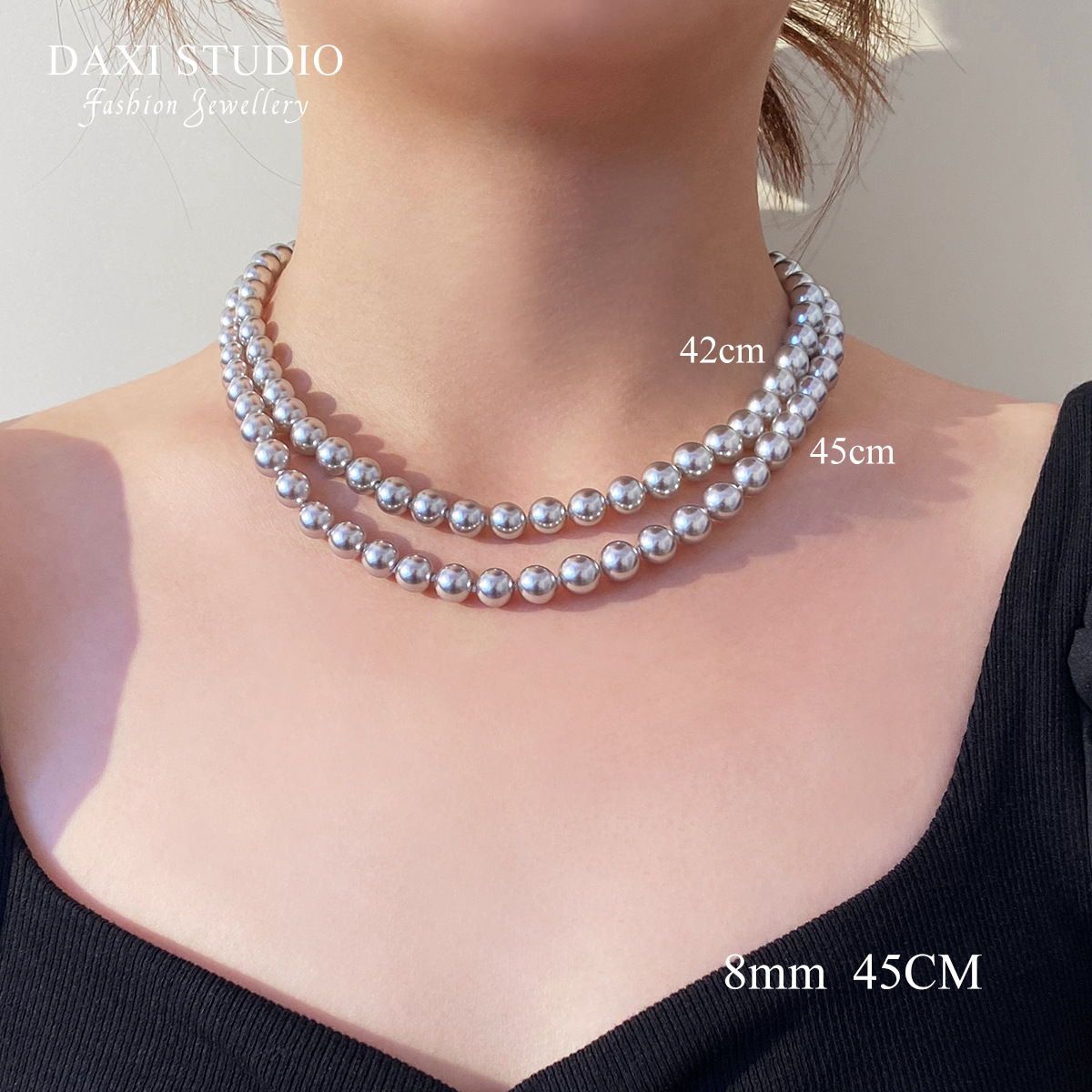 灰色8㎜总长42cm 钛钢元宝扣款