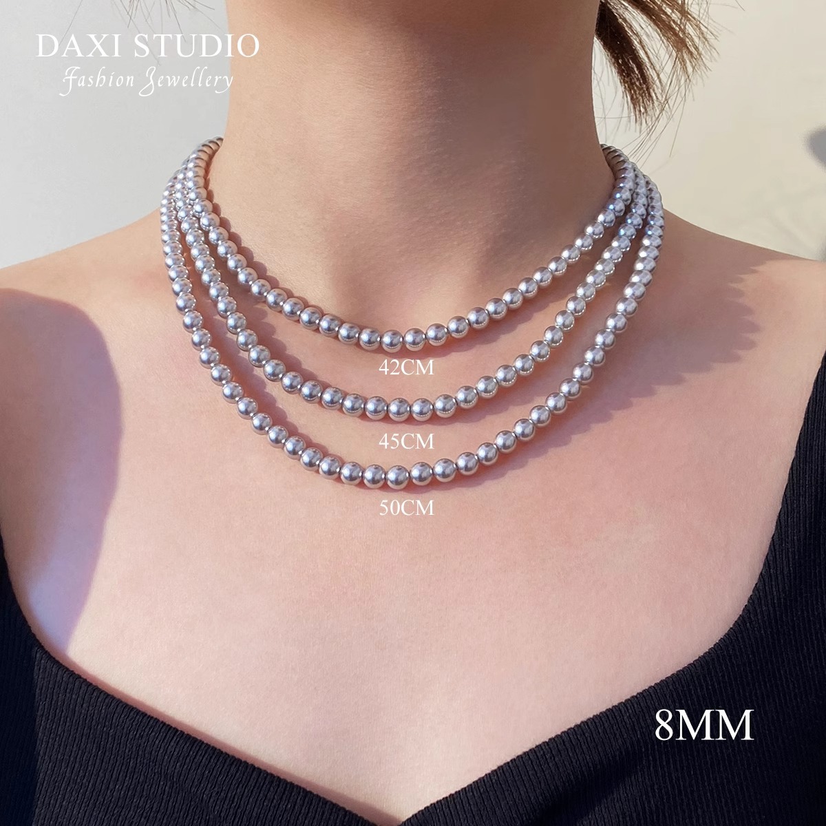 灰色8㎜总长47cm 钛钢元宝扣款