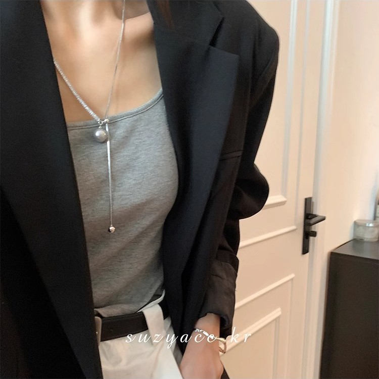 珍珠可抽拉长款项链新款爆款轻奢简约小众毛衣链金属珍珠项链