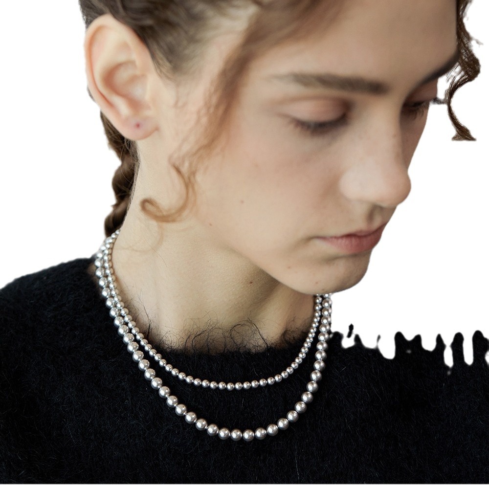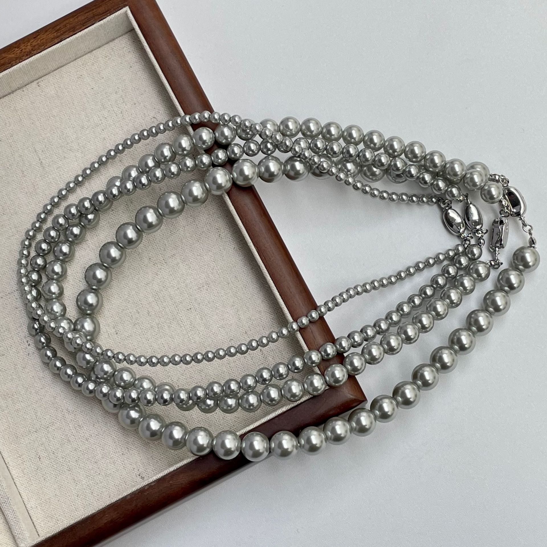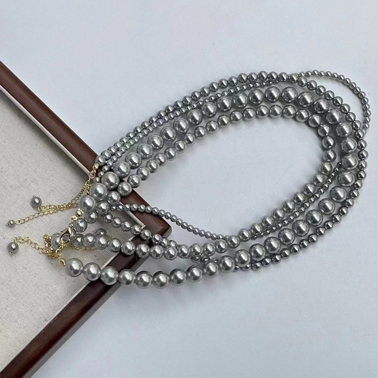G/S 时髦休闲银灰色施家珍珠项链轻奢高级贝珠叠戴锁骨链真多麻色