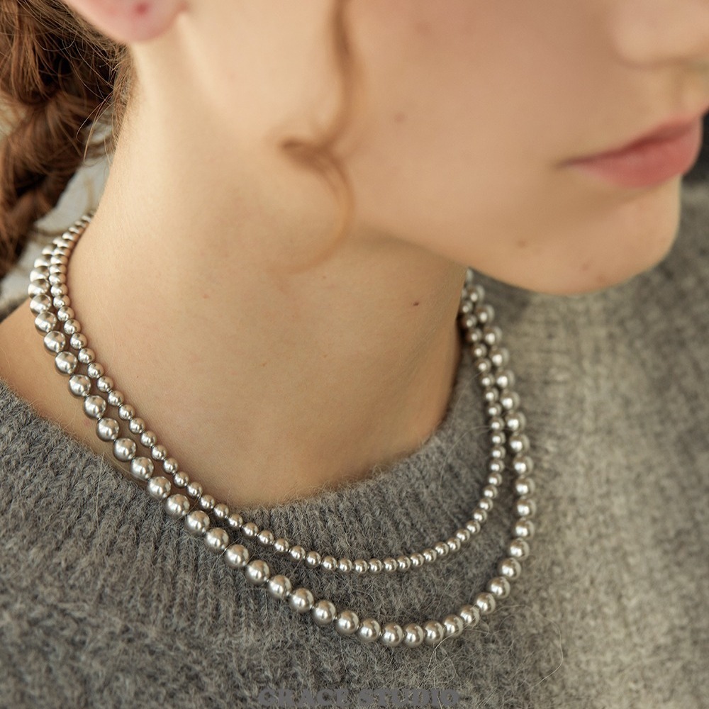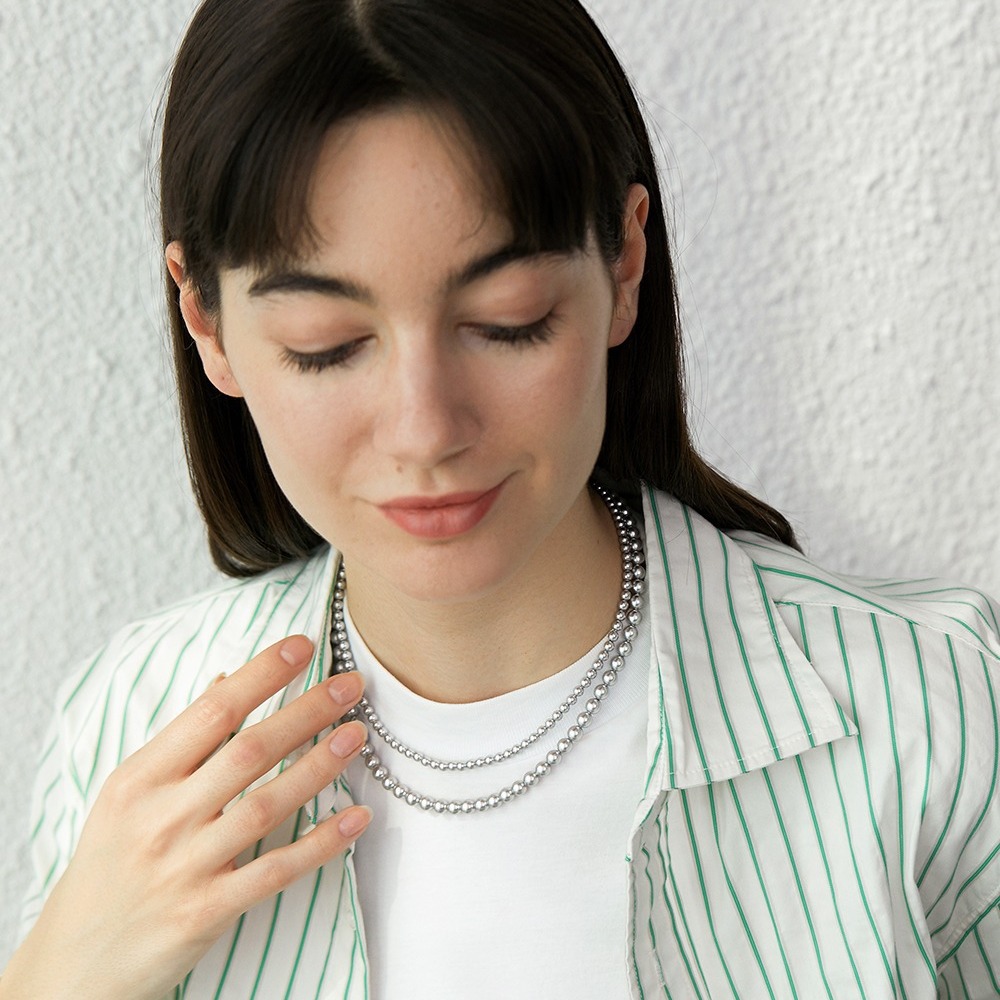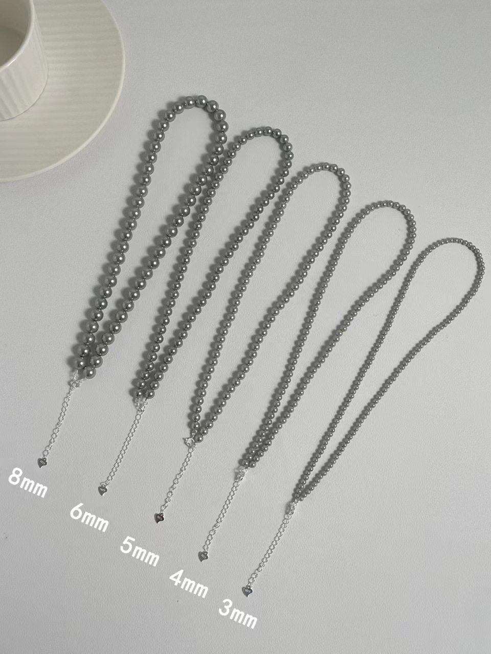 G/S 时髦休闲银灰色施家珍珠项链轻奢高级贝珠叠戴锁骨链真多麻色