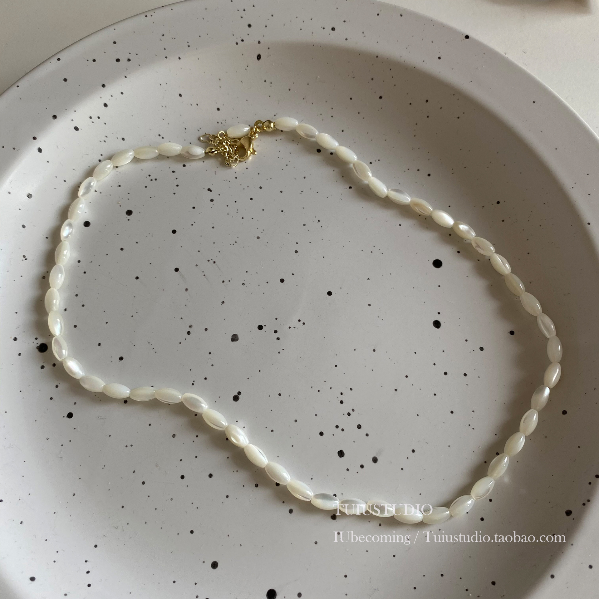 韩国设计小众 复古手工贝壳珠串珠项链珍珠项链 搭遍衣柜 简约ins