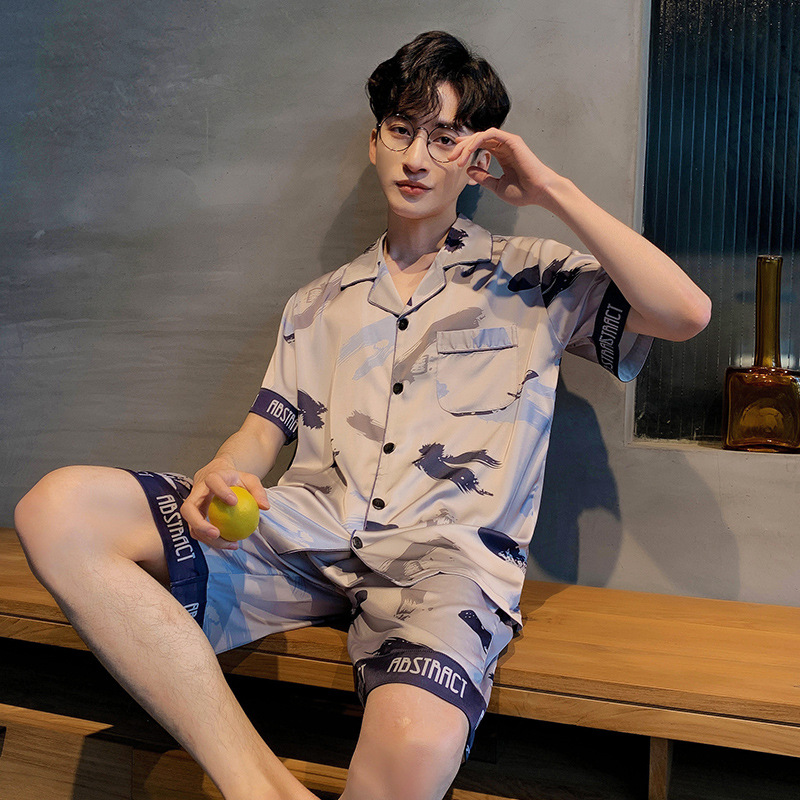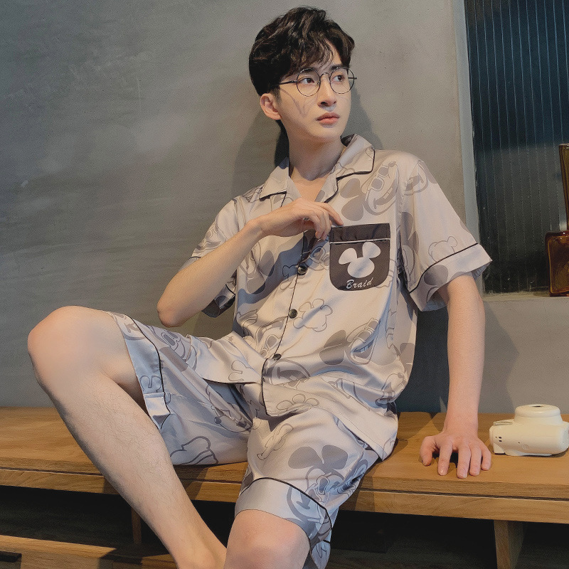 新款睡衣男士夏季短袖冰丝薄款高级感网红卡通开衫大码家居服套装
