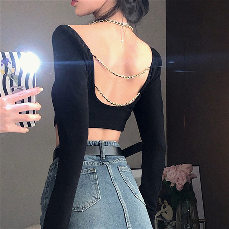 小心机露背性感长袖T恤女春秋装2025新款韩版辣妹修身显瘦上衣ins
