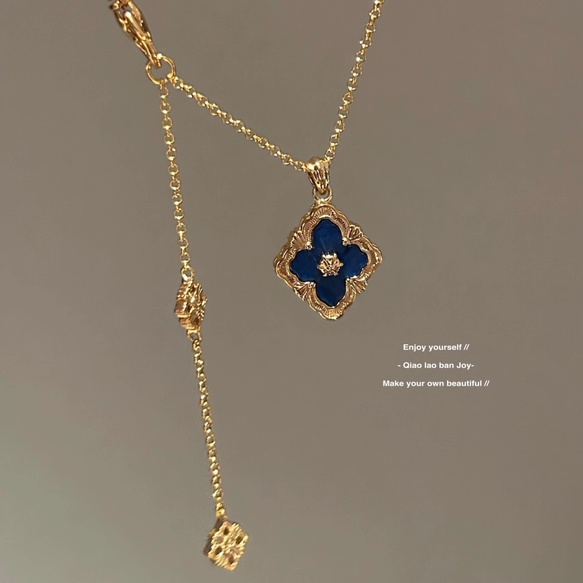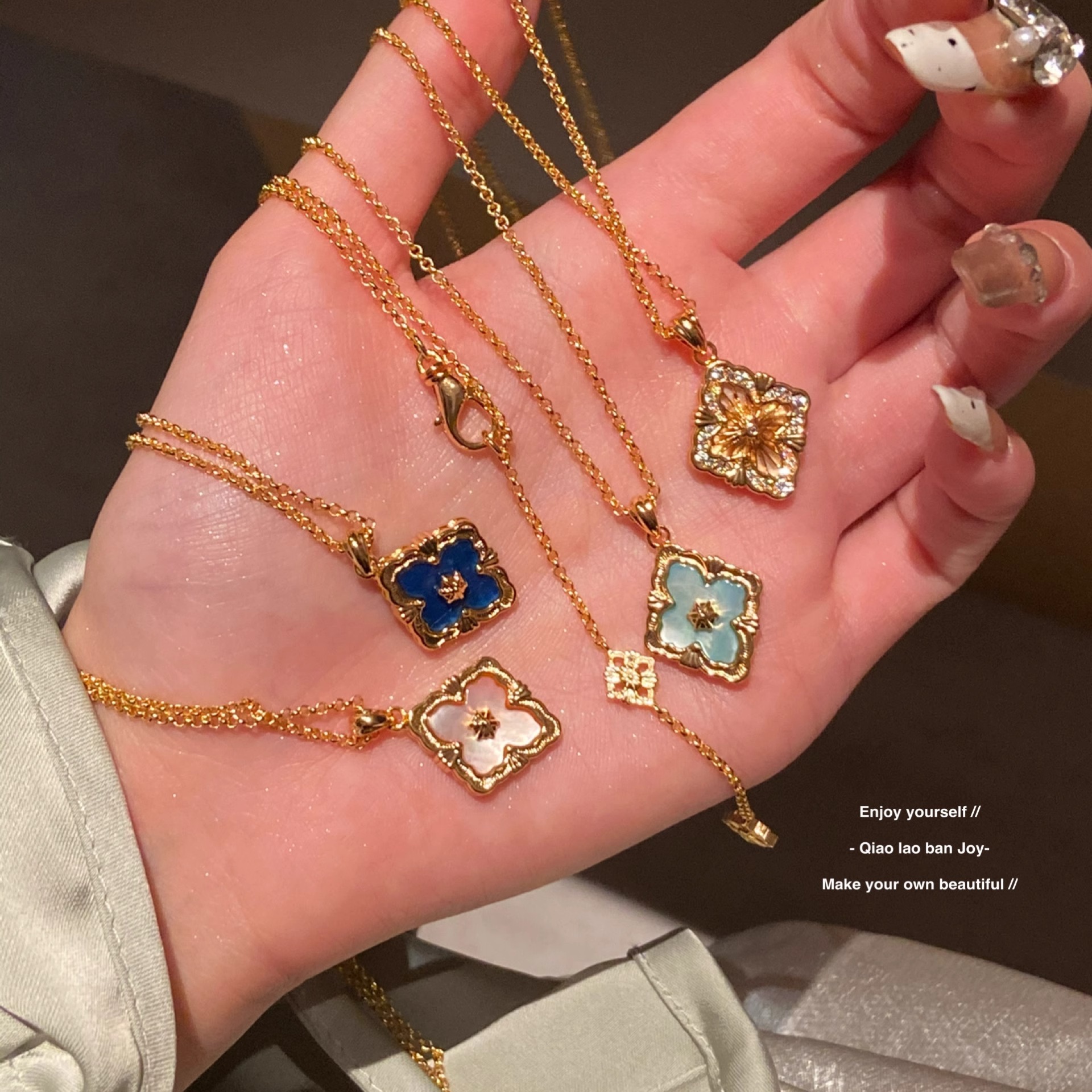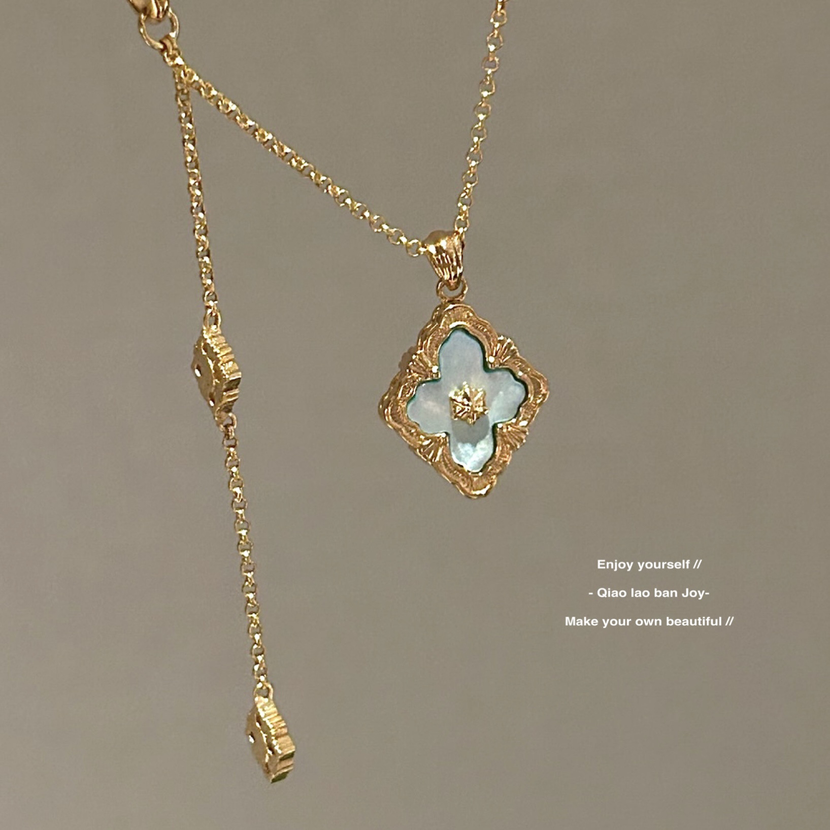 布契拉丝四叶草项链双面锁骨链中古老钱轻奢毛衣链