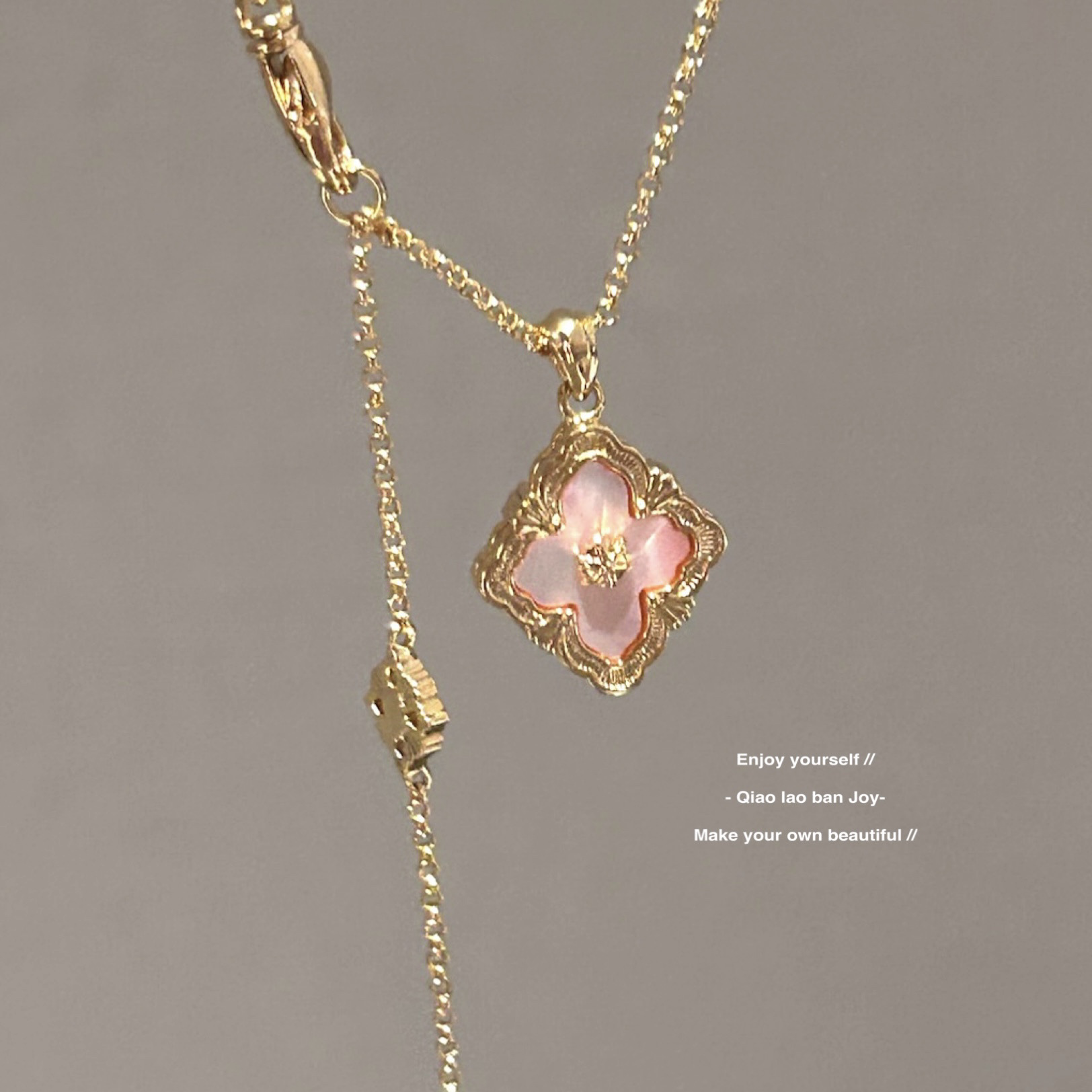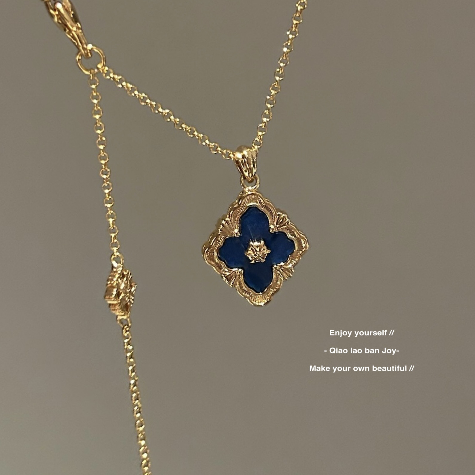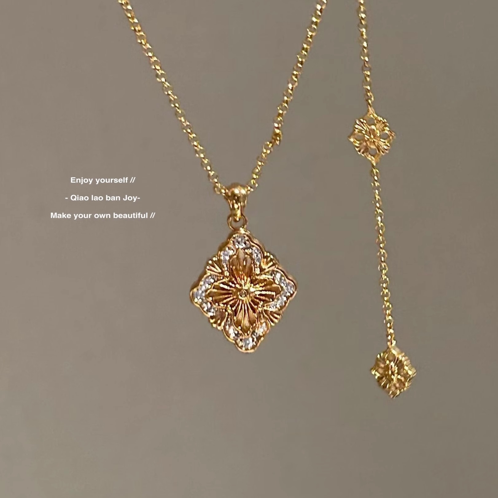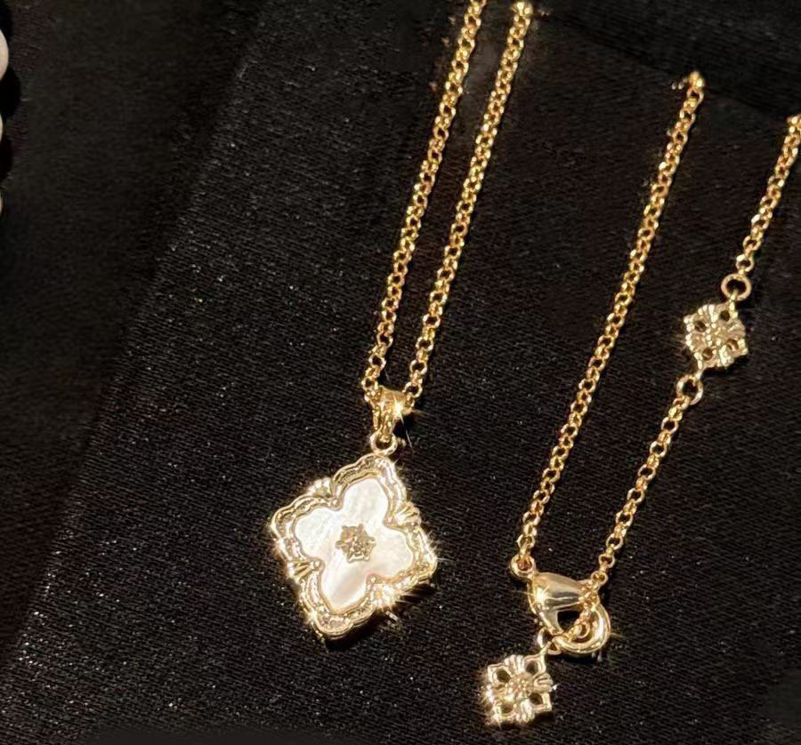 布契拉丝四叶草项链双面锁骨链中古老钱轻奢毛衣链