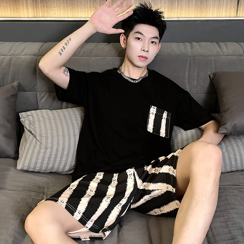 男士睡衣夏季短袖休闲男款家居服夏天薄款加大码夏款套装