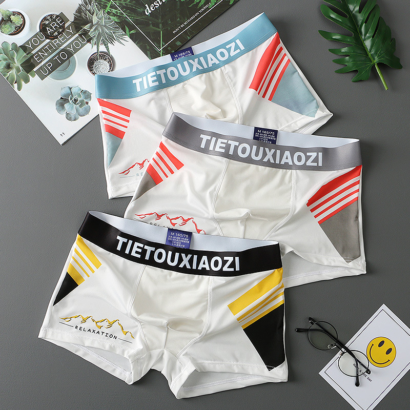 男士内裤薄冰丝平角裤青年夏季四角裤男生薄款裤衩透气个性潮流头