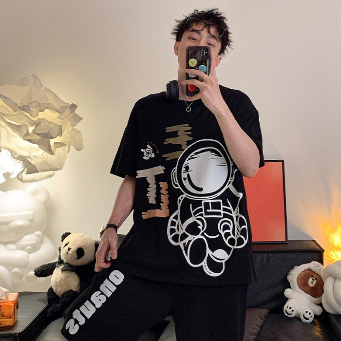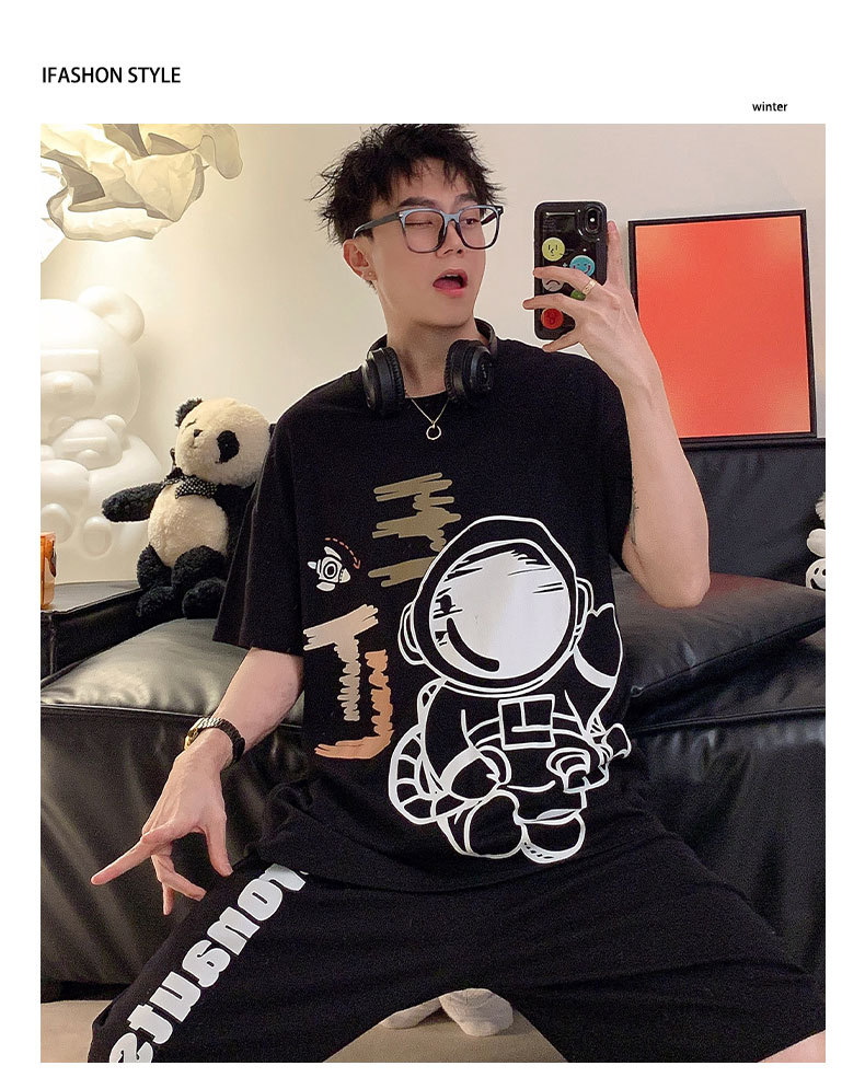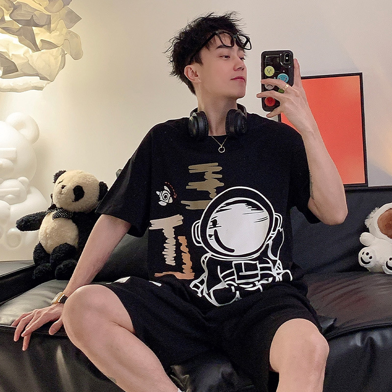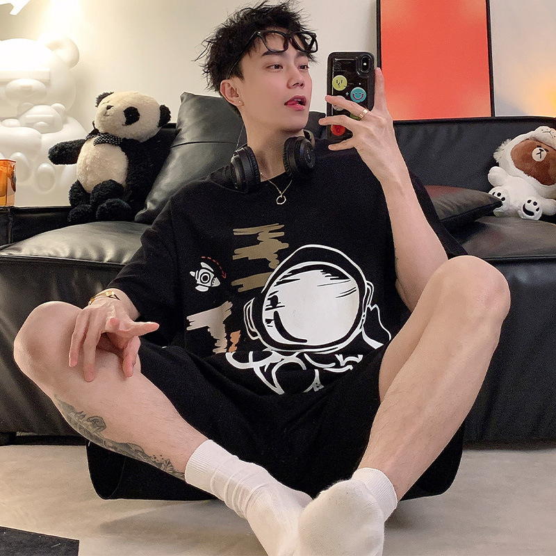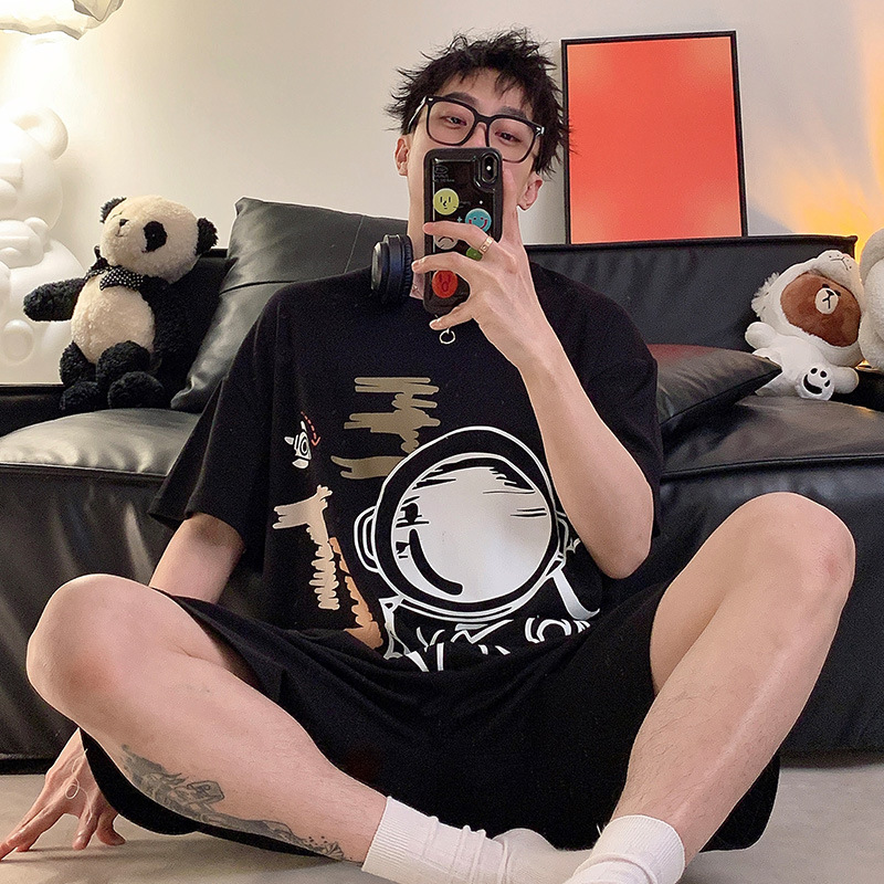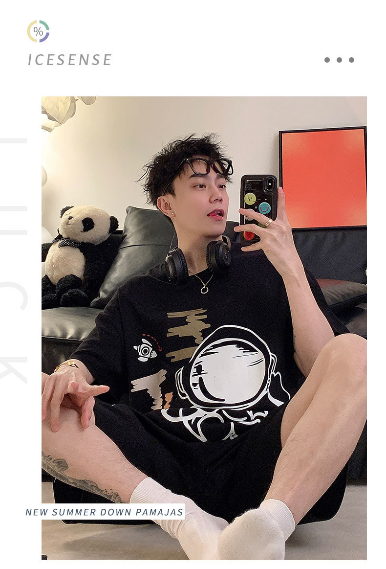 睡衣男士夏季短袖短裤新款青少年宽松卡通夏天套头家居服套装