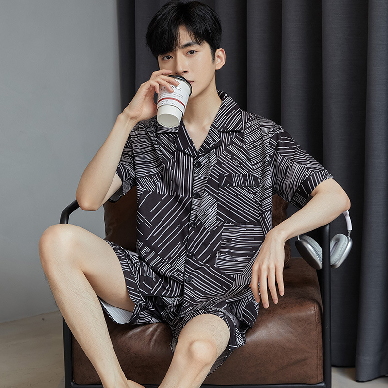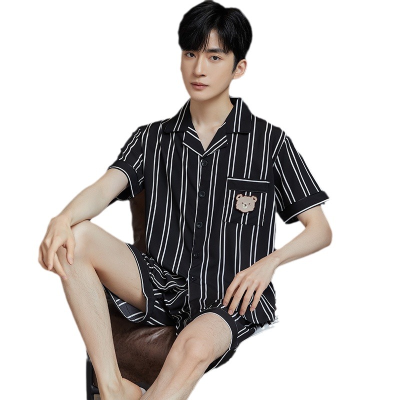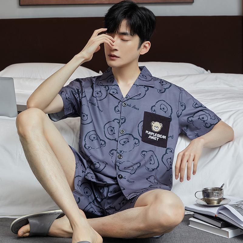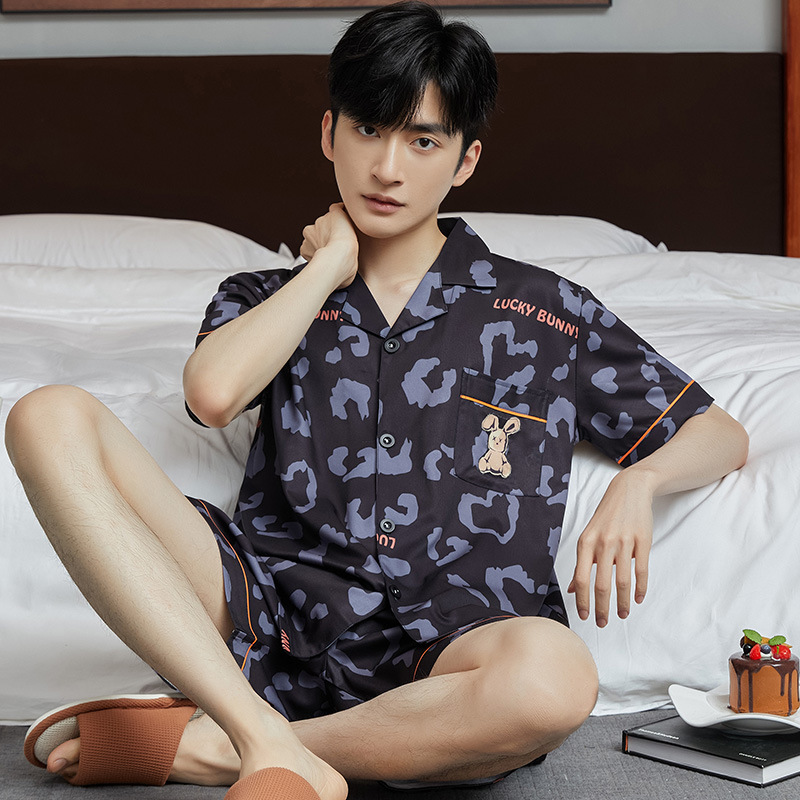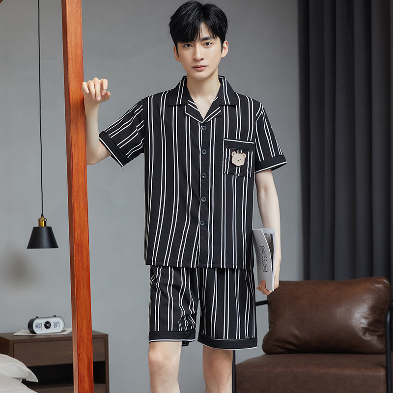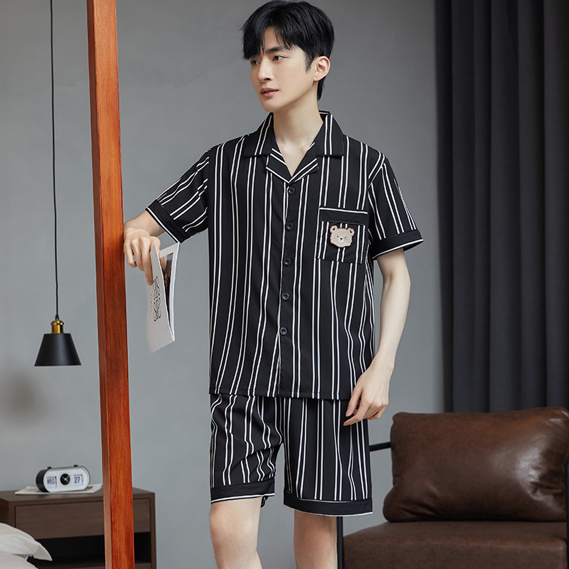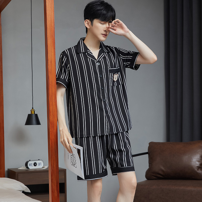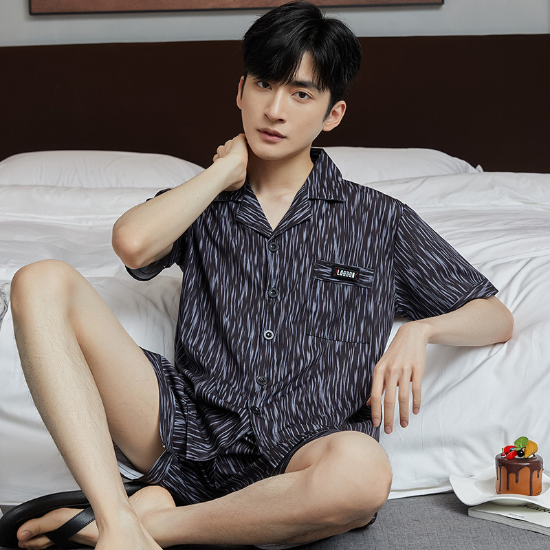 夏季高级感睡衣男士休闲宽松冰丝短袖短裤套装青少年仿真丝家居服