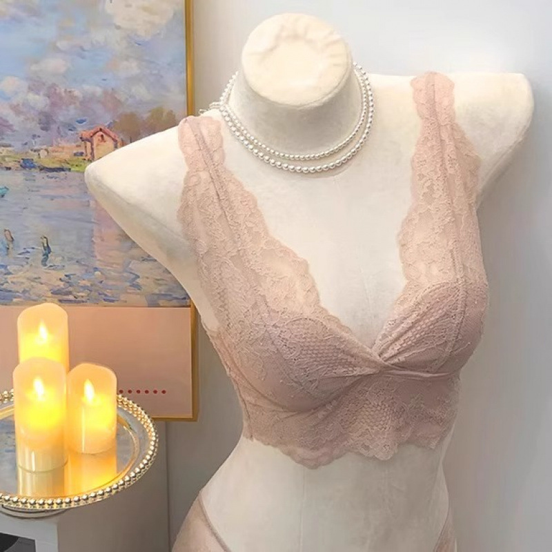 法式高奢蕾丝内衣女小胸聚拢性感内搭吊带背心式无钢圈文胸罩套装