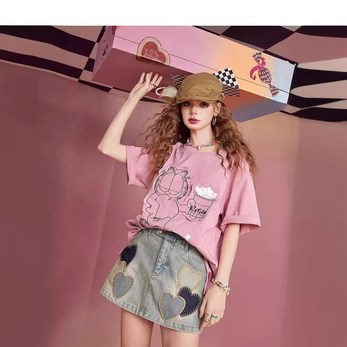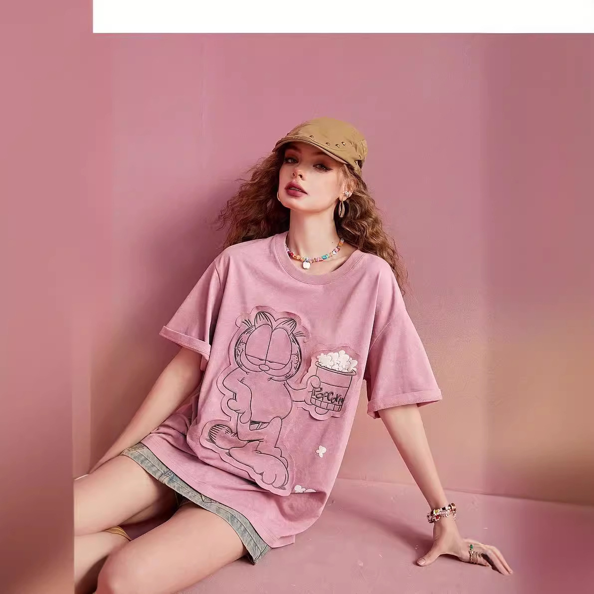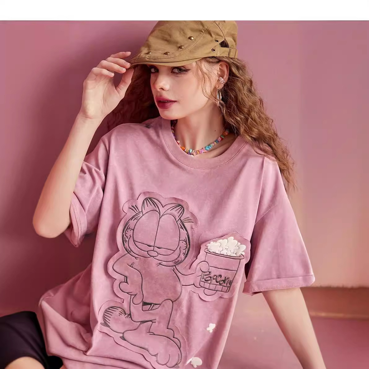 【加菲猫联名】复古印花宽松短袖t恤女夏新设计感上衣