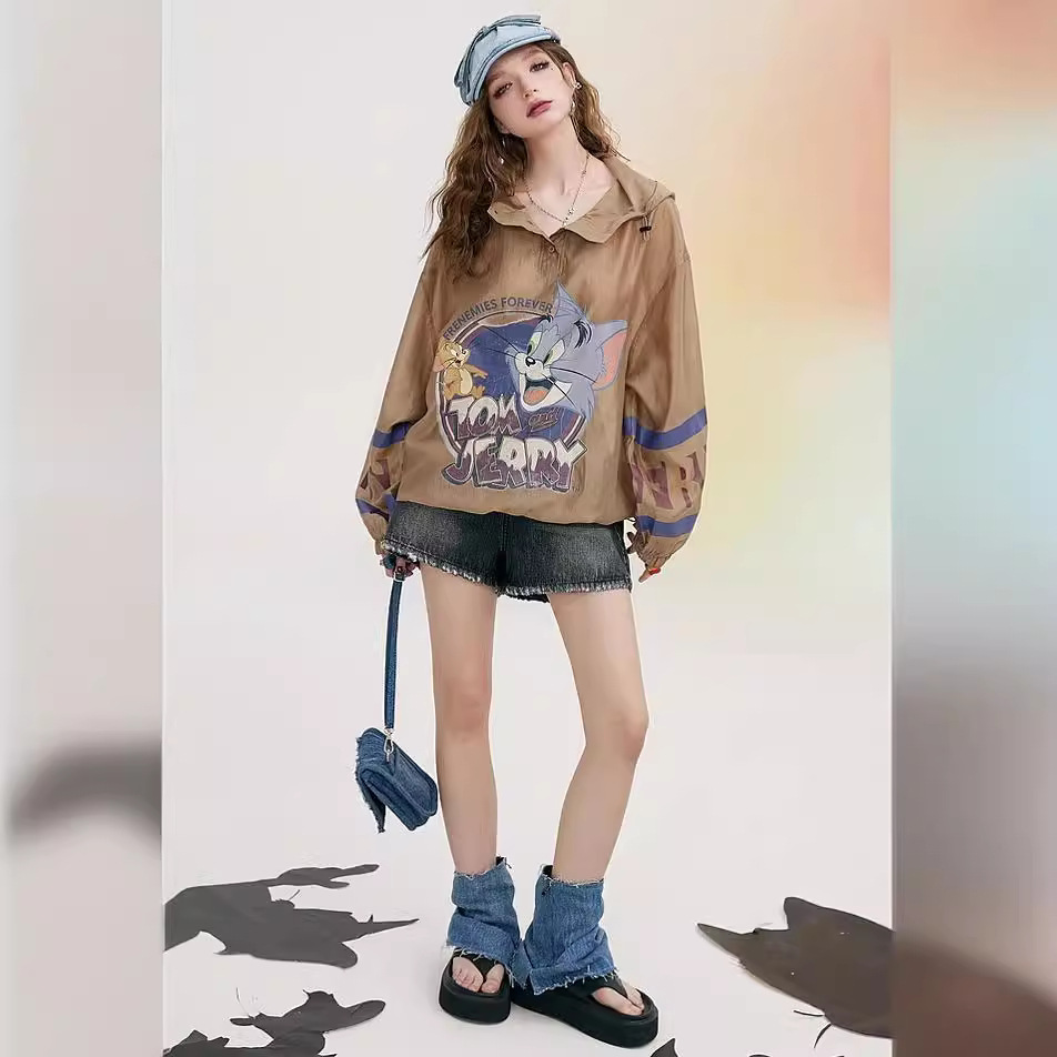 【猫和老鼠联名】 复古印花防晒短外套女夏季新款
