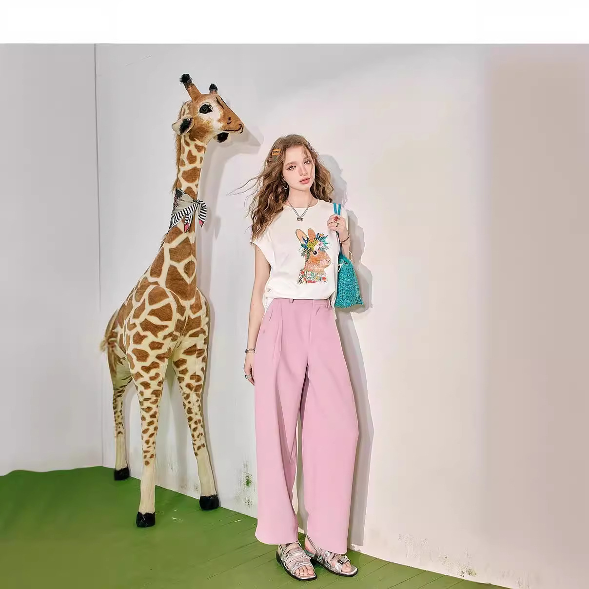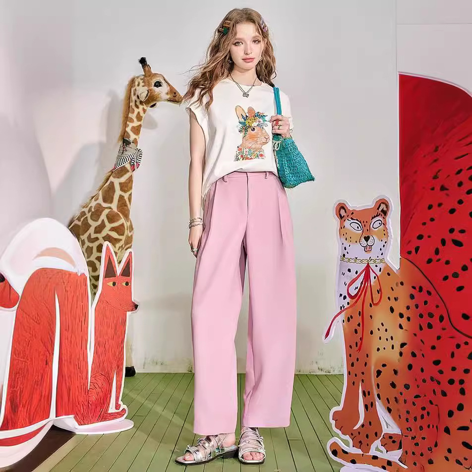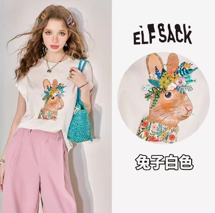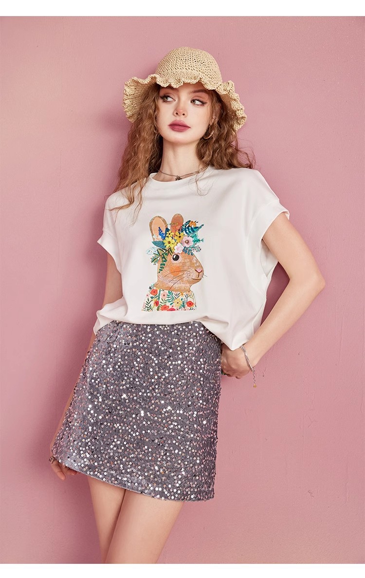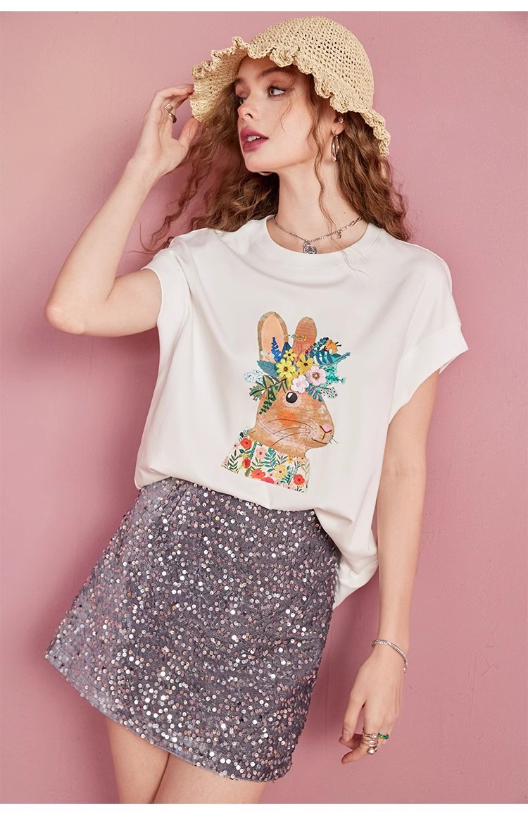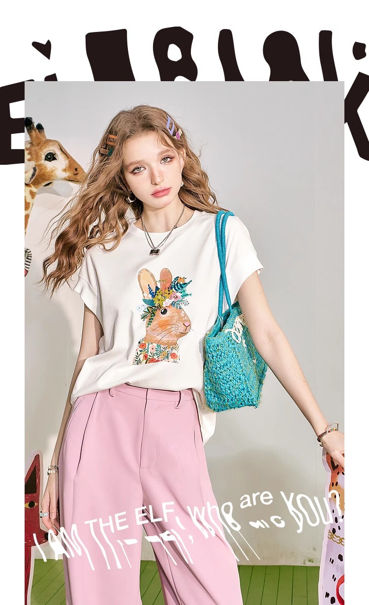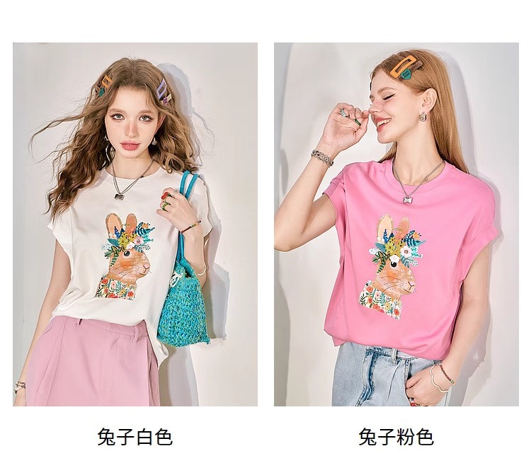兔子印花宽松短袖t恤女夏季新款设计感百搭上衣
