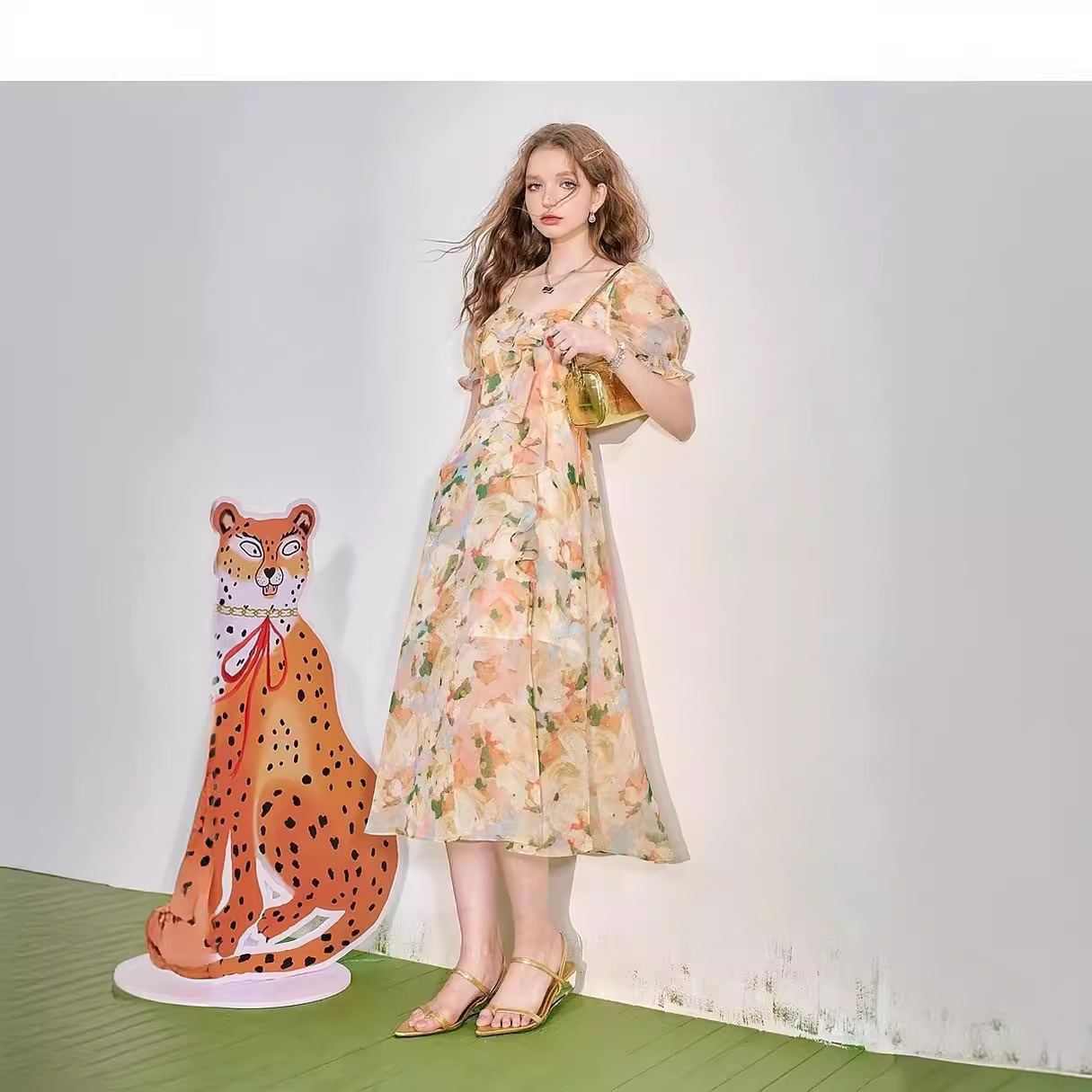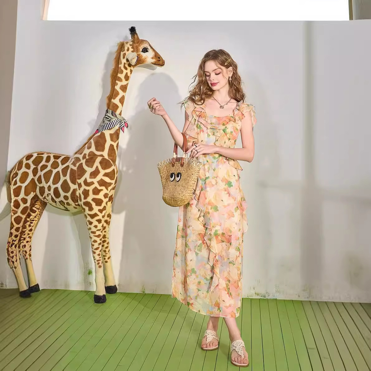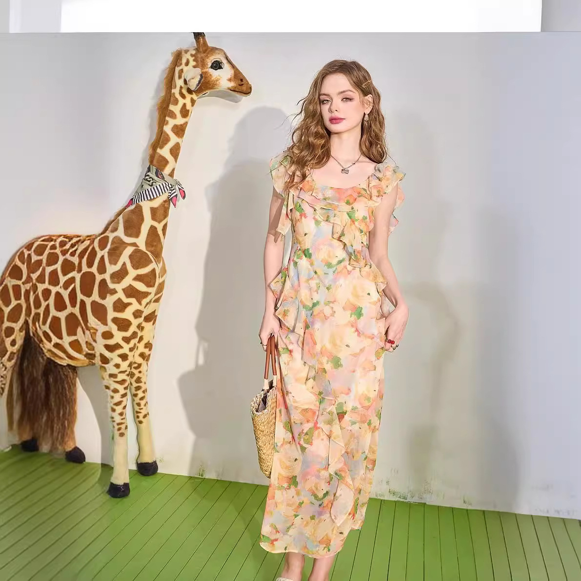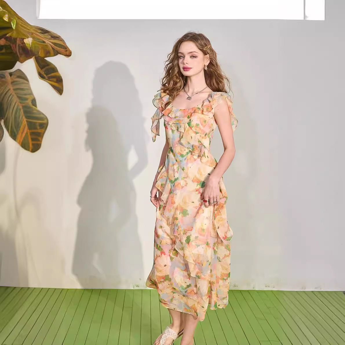 【花天酒地裙】木耳边碎花连衣裙女夏新款度假风