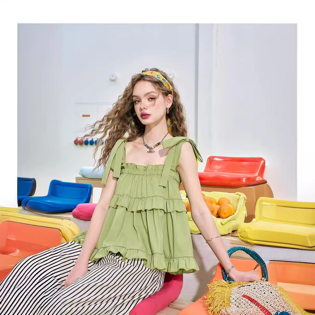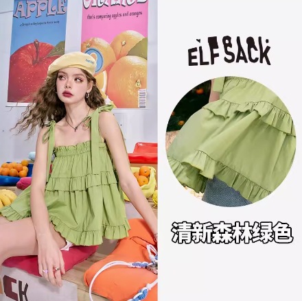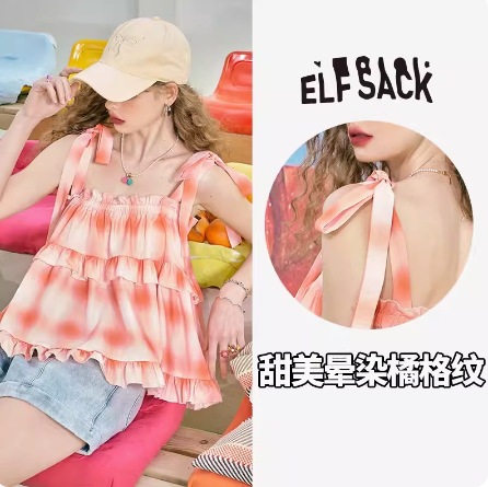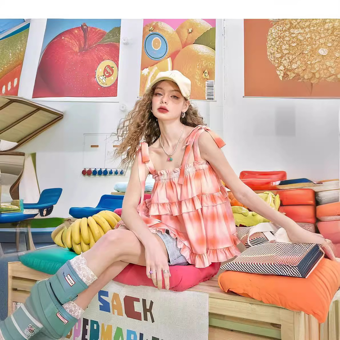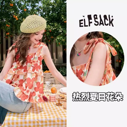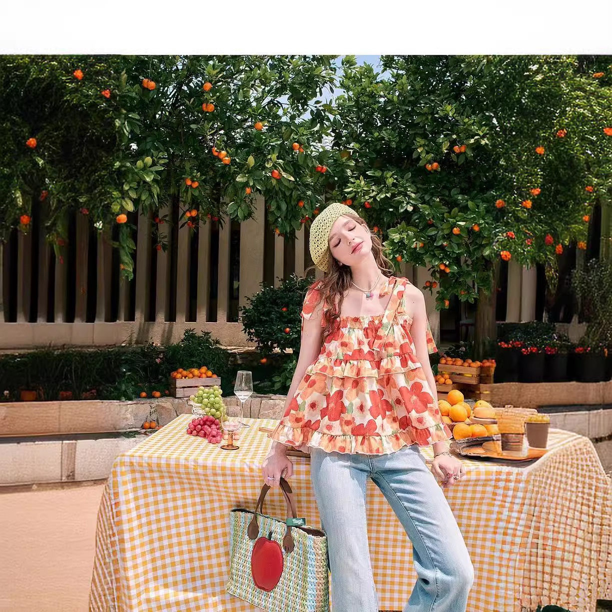 【太阳花系列】花朵满印背心吊带女夏季新款荷叶边抽褶