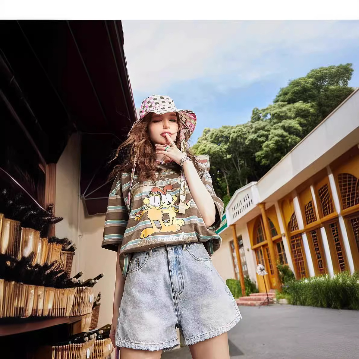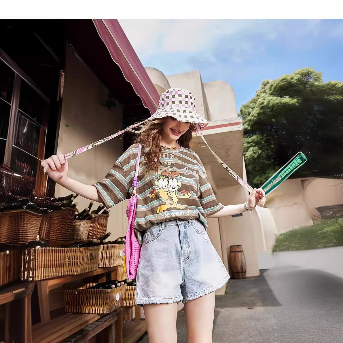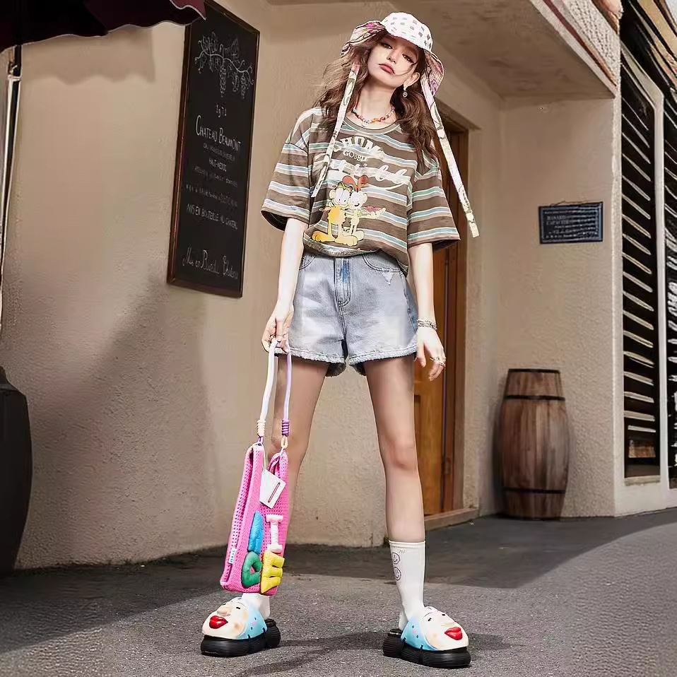 【星期T】加菲猫联名美式条纹宽松显瘦短袖t恤女夏新设计感上衣