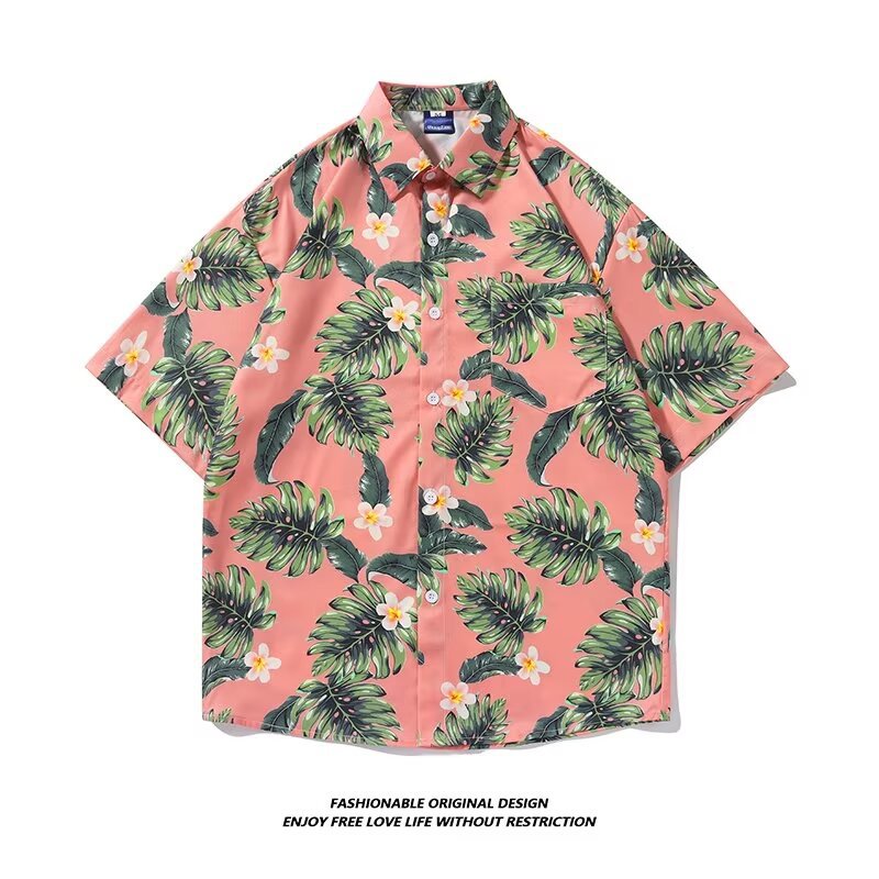 泰国度假花衬衫男装夏季短袖花衬衫情侣花海南岛旅游风短袖花衬衫