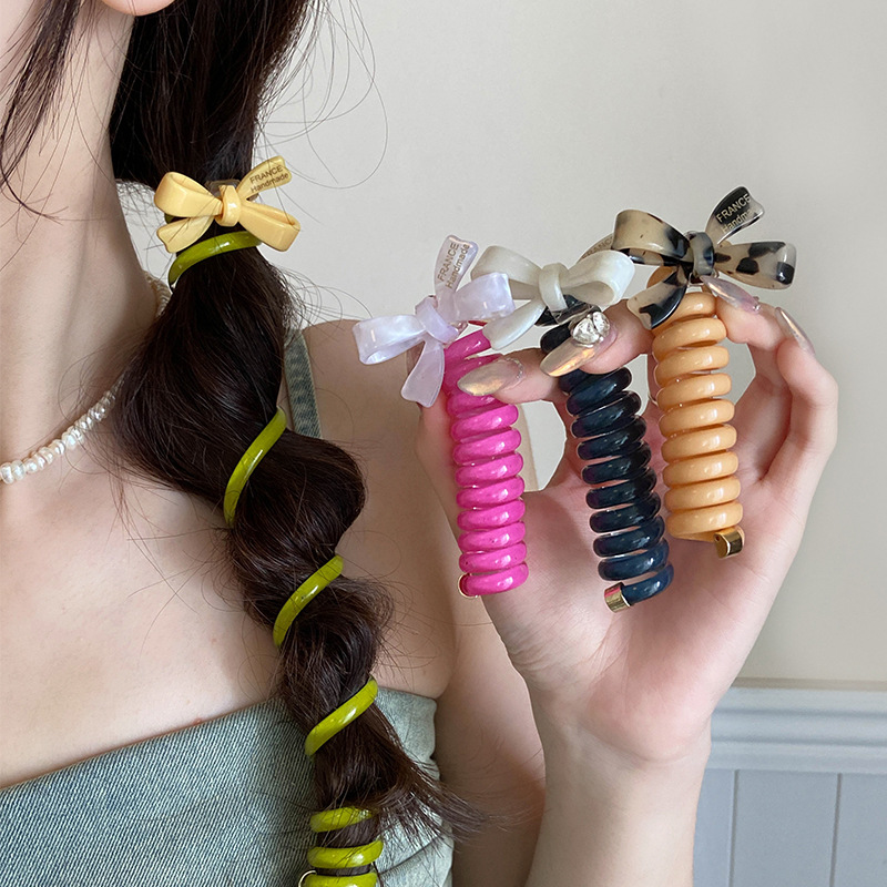 新款高级感春夏可爱蝴蝶结电话线发圈泡泡辫编发神器头绳头饰