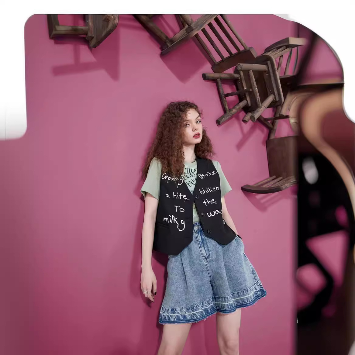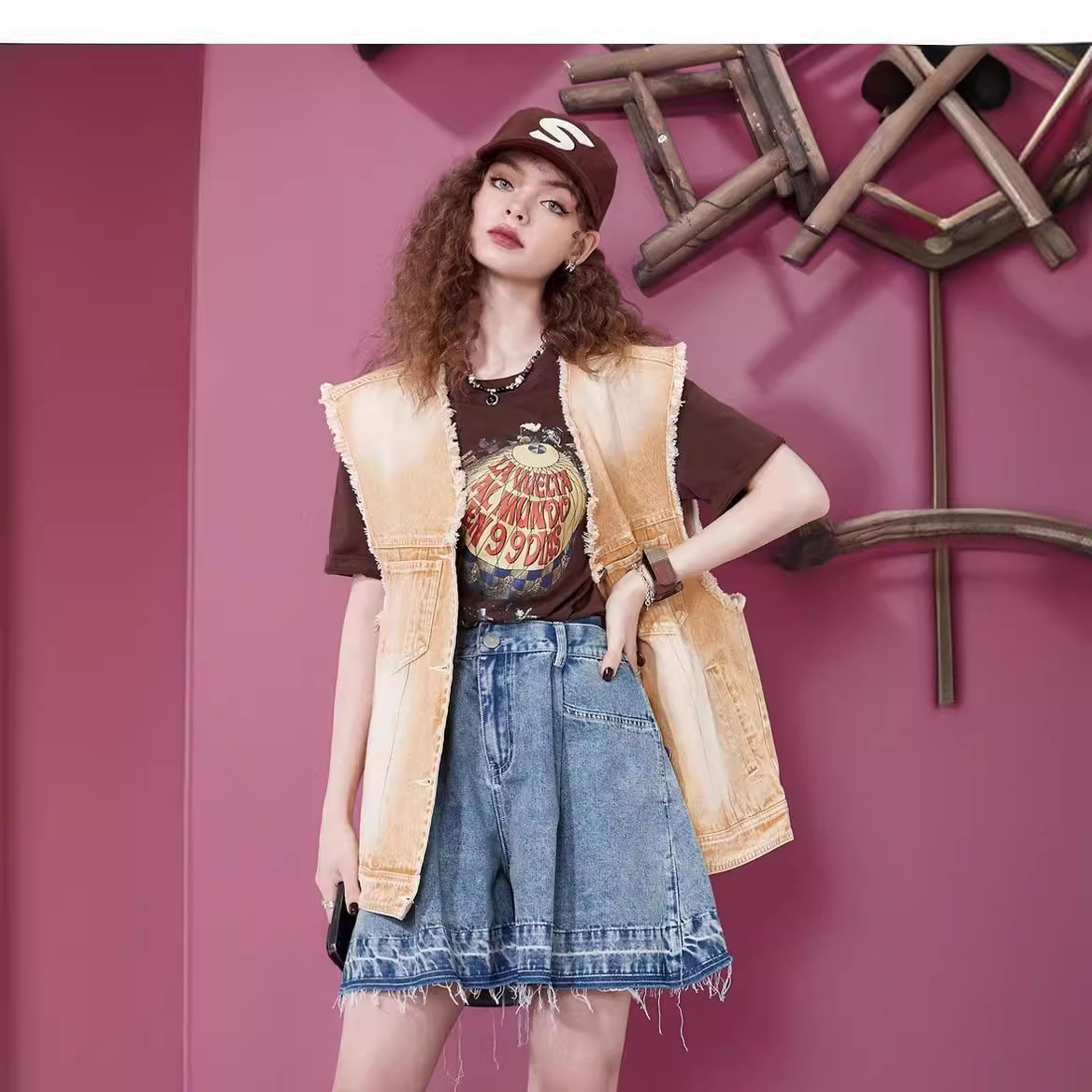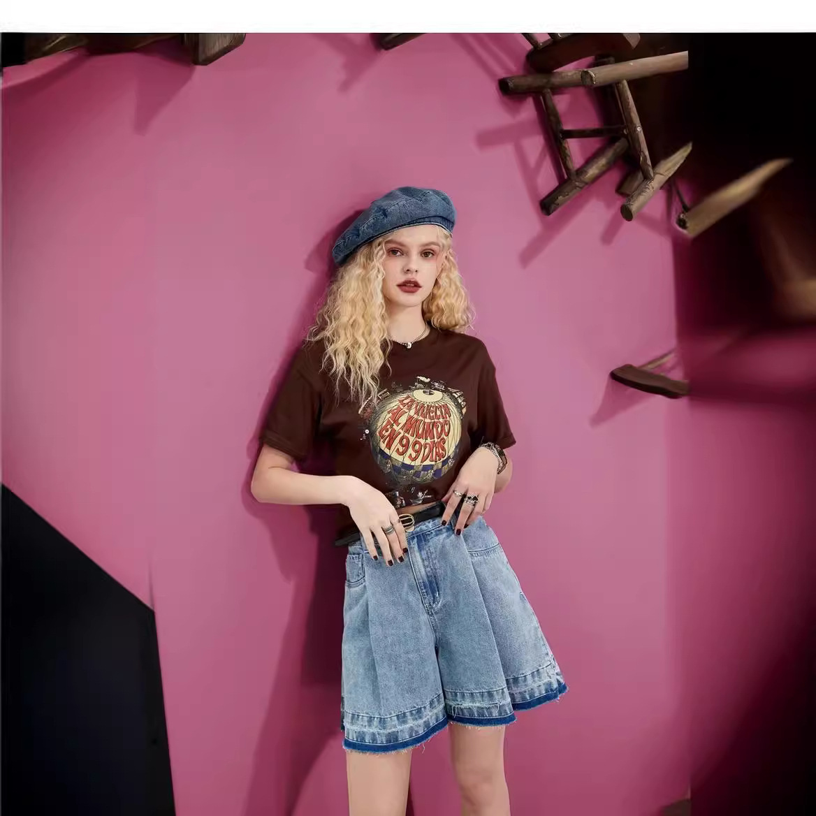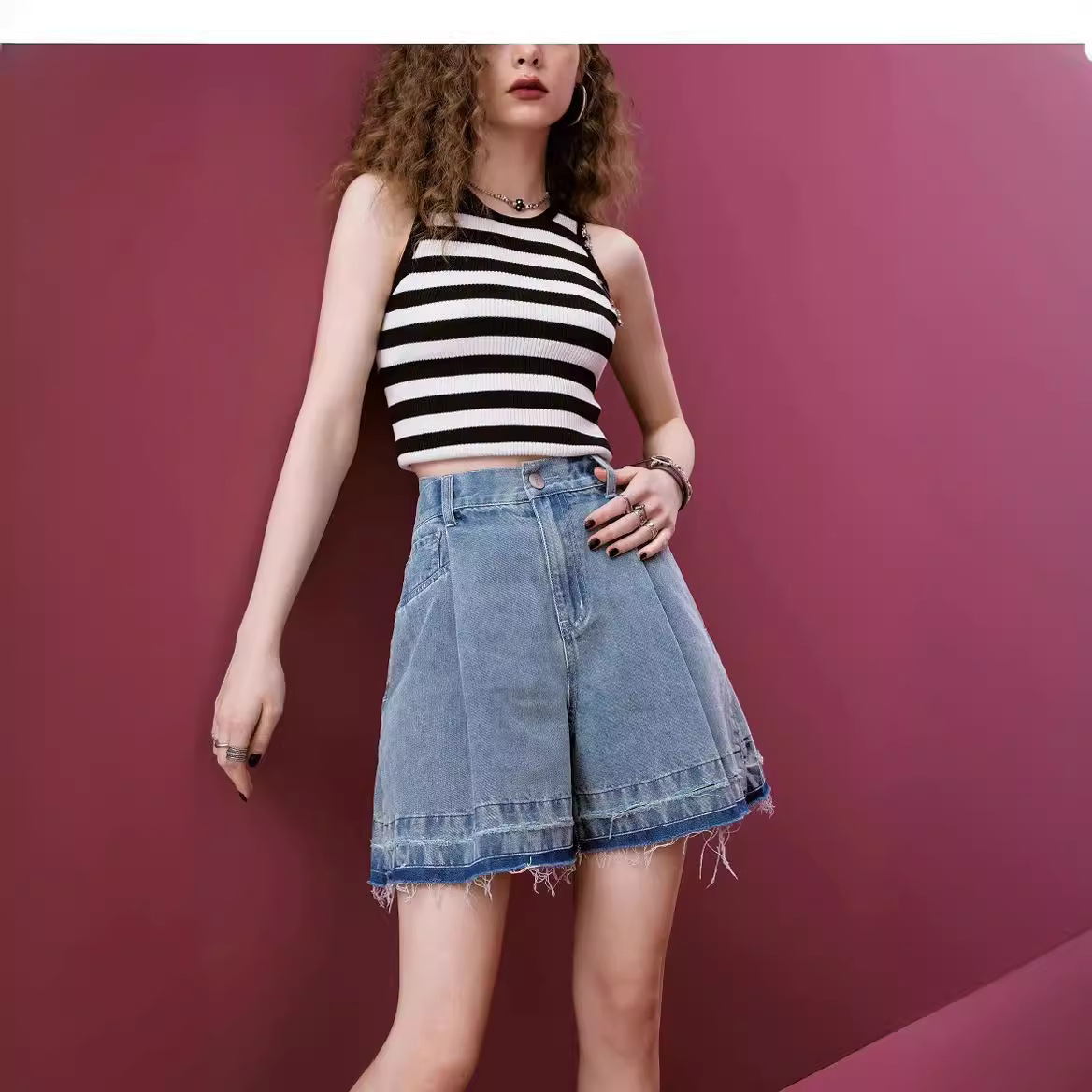 高腰a字牛仔短裤女夏季新款宽松阔腿显瘦小个子潮