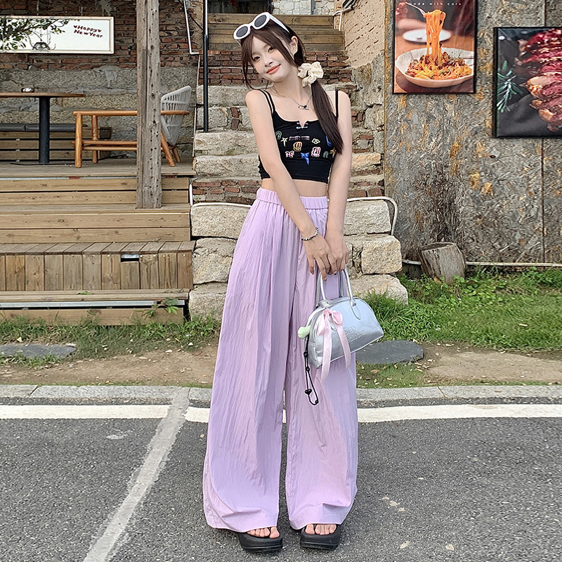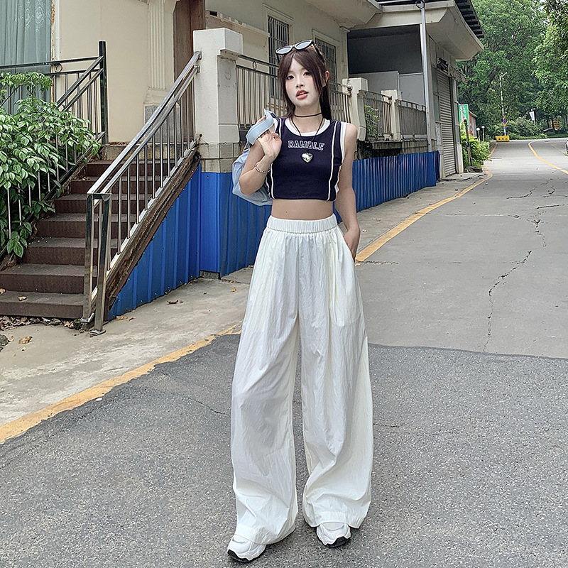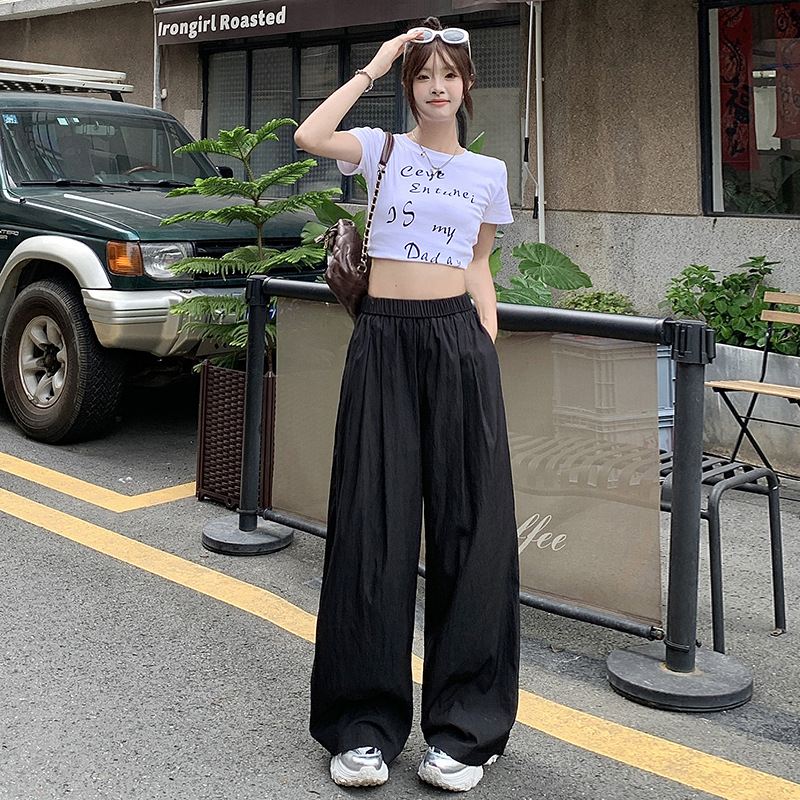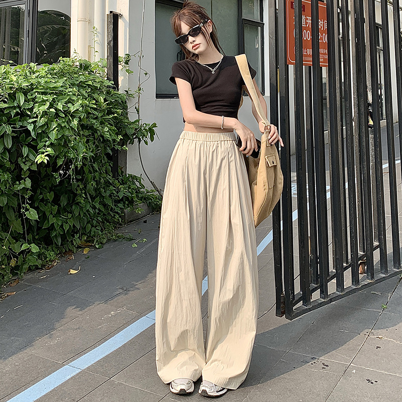 冰丝速干阔腿裤女夏季薄款宽松休闲防晒直筒山本裤慵懒拖地裤
