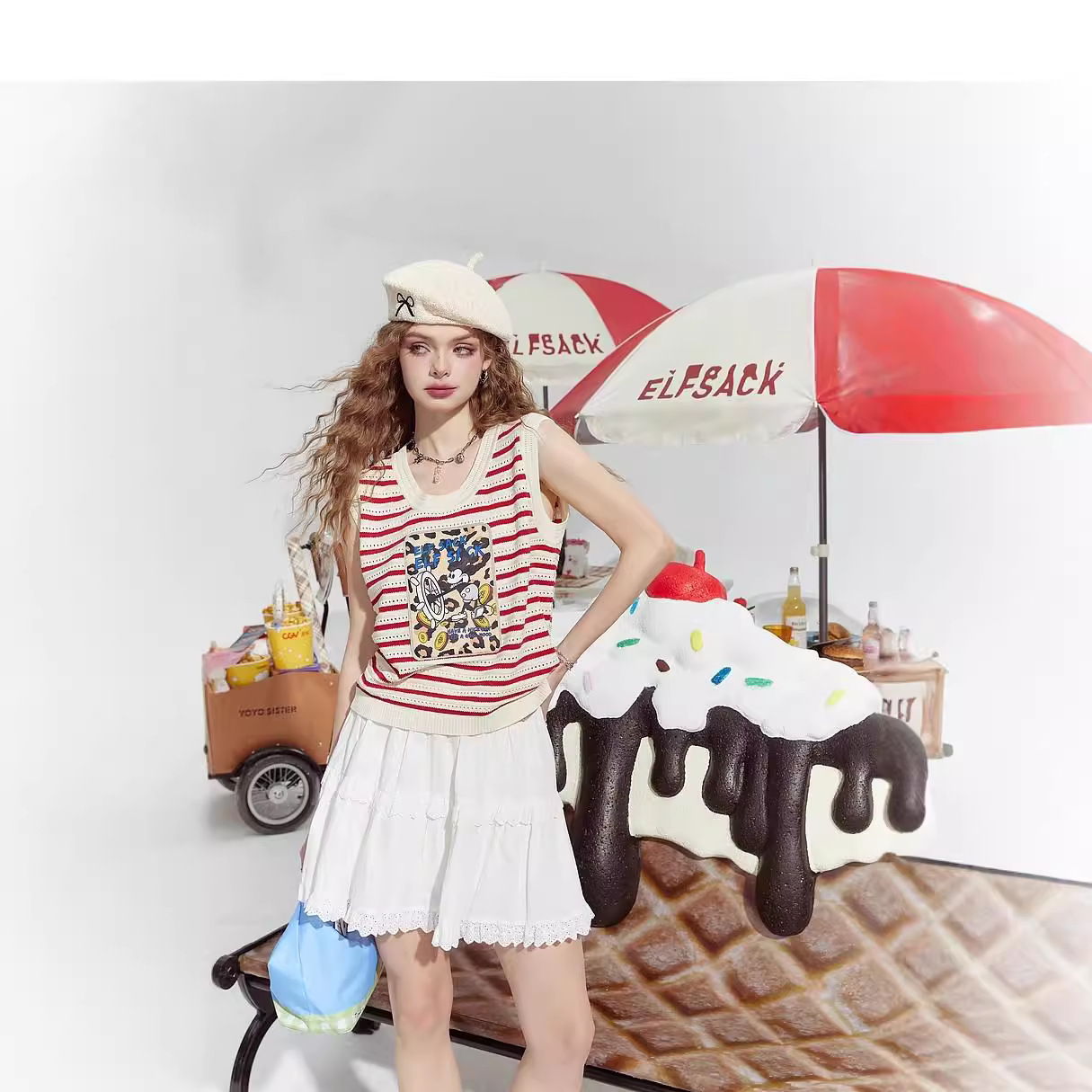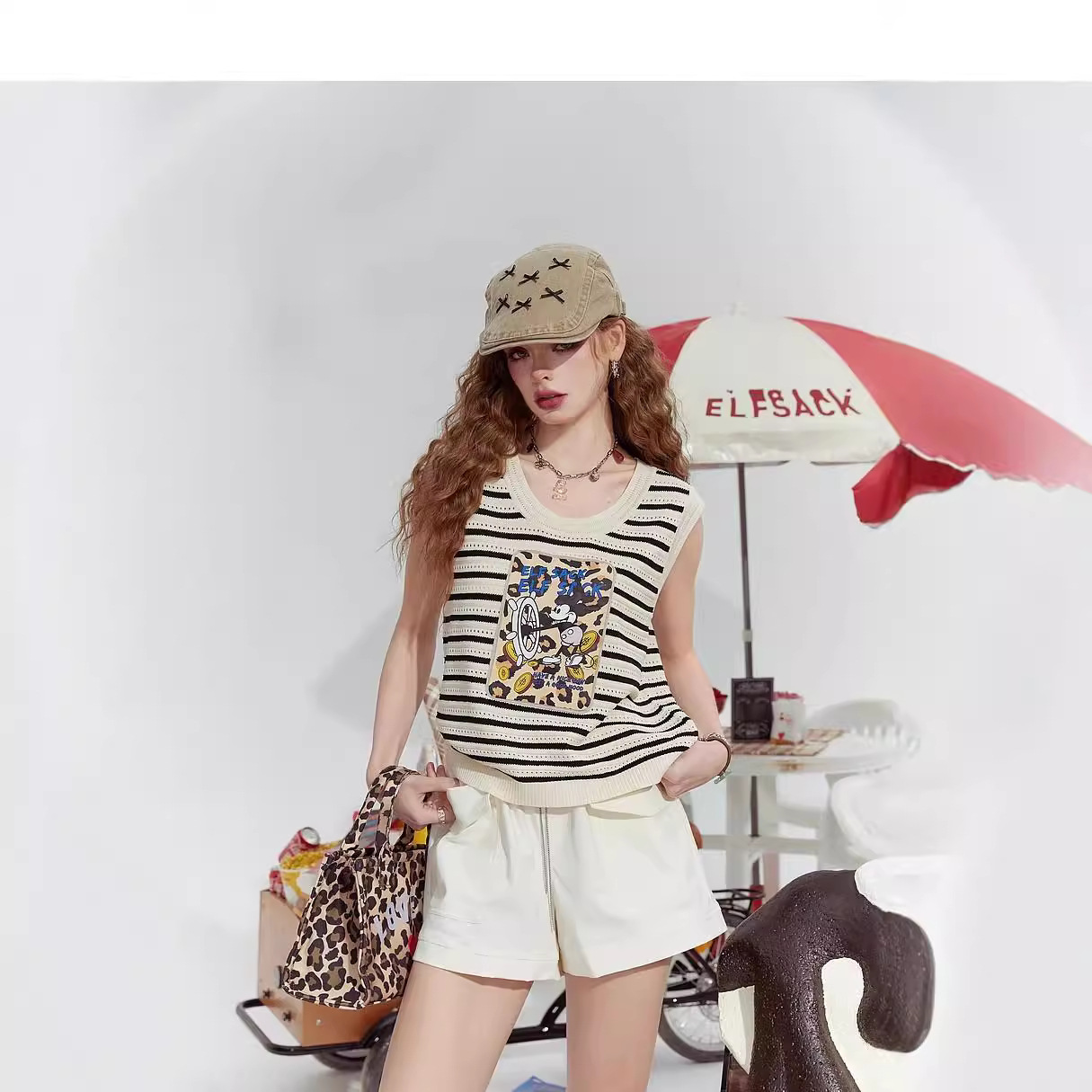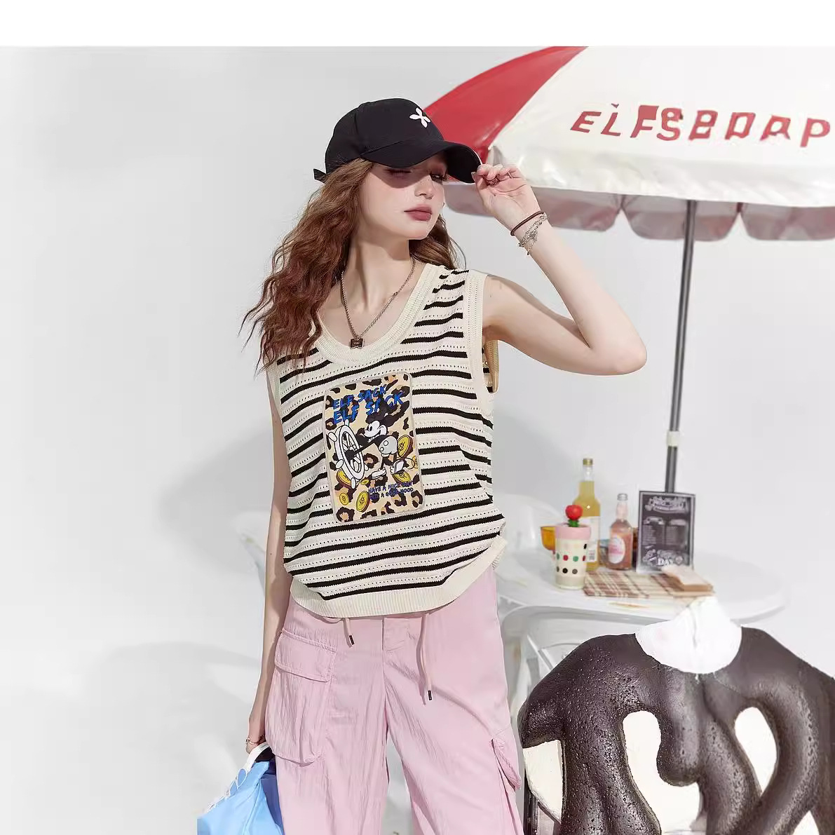 撞色条纹冰丝背心针织衫女夏季新款休闲百搭上衣