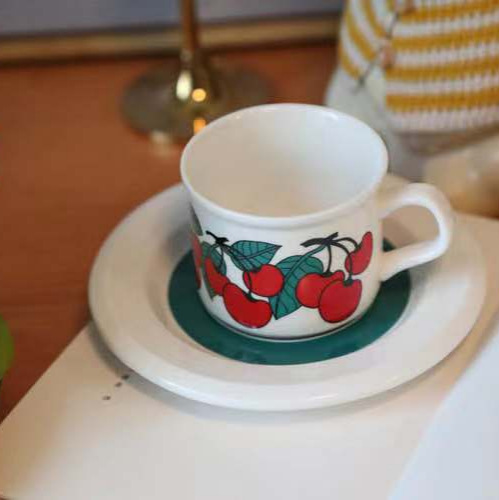 中古风樱桃咖啡杯碟陶瓷杯下午红茶杯碟牛奶摩卡杯ins同款