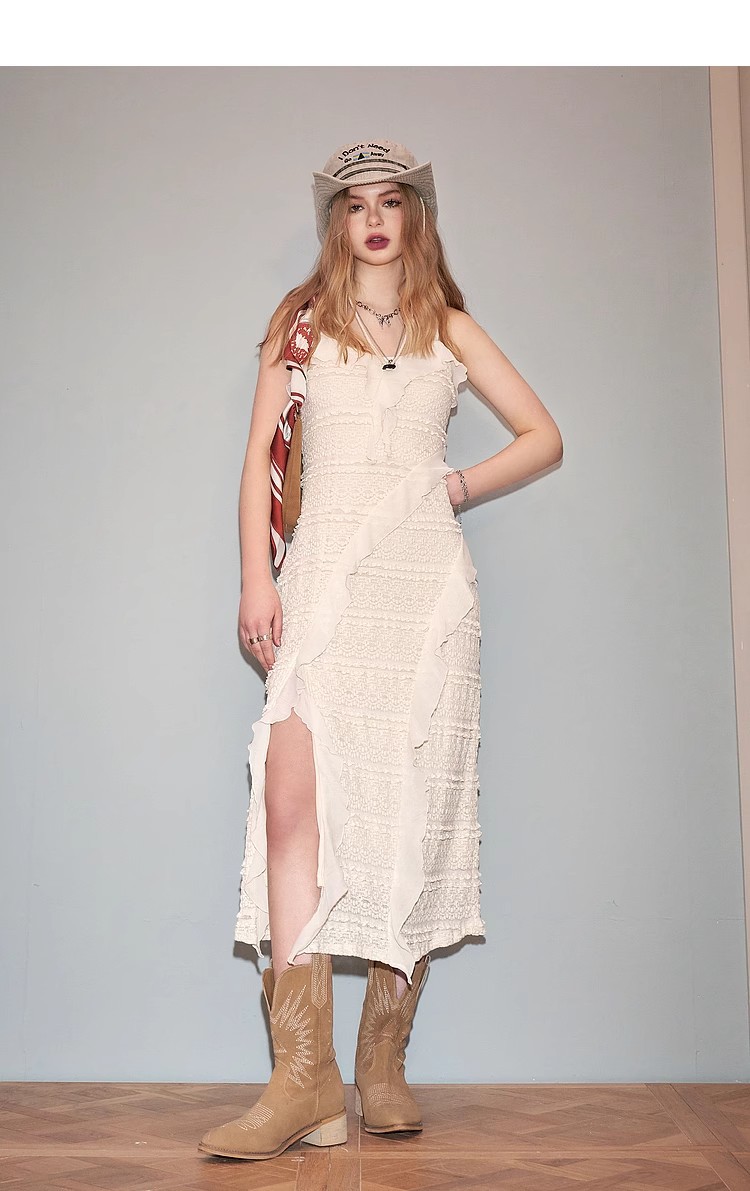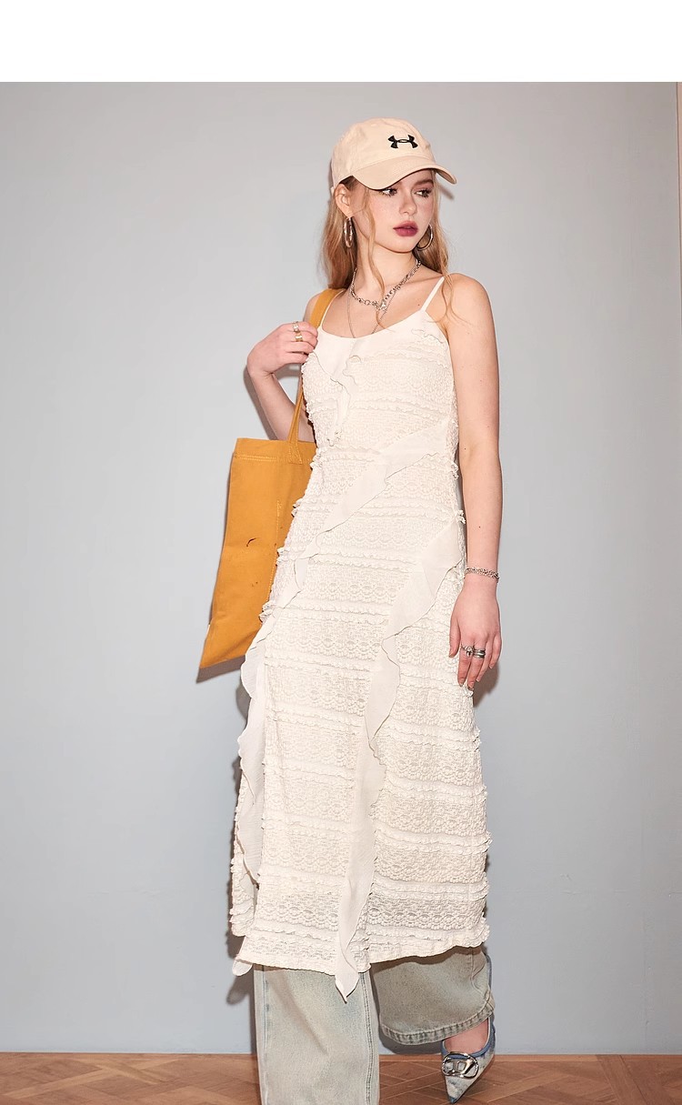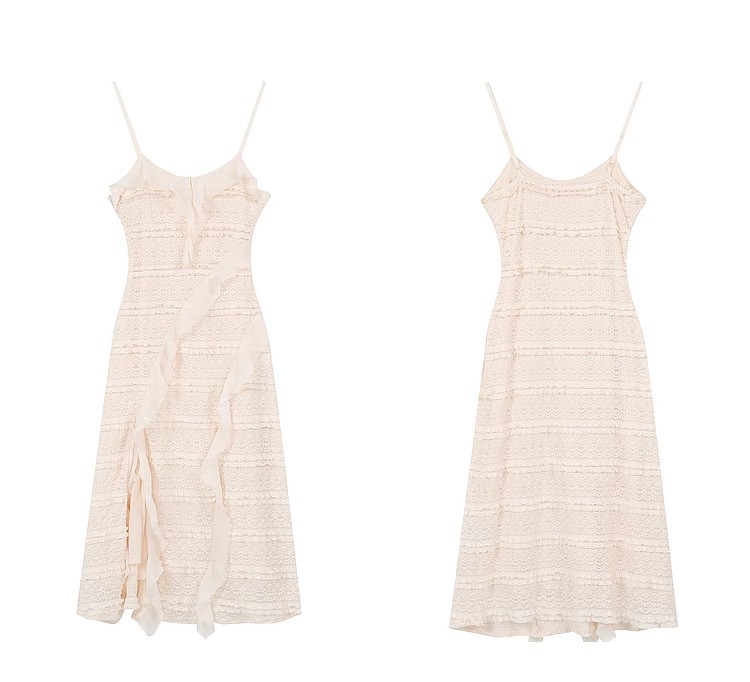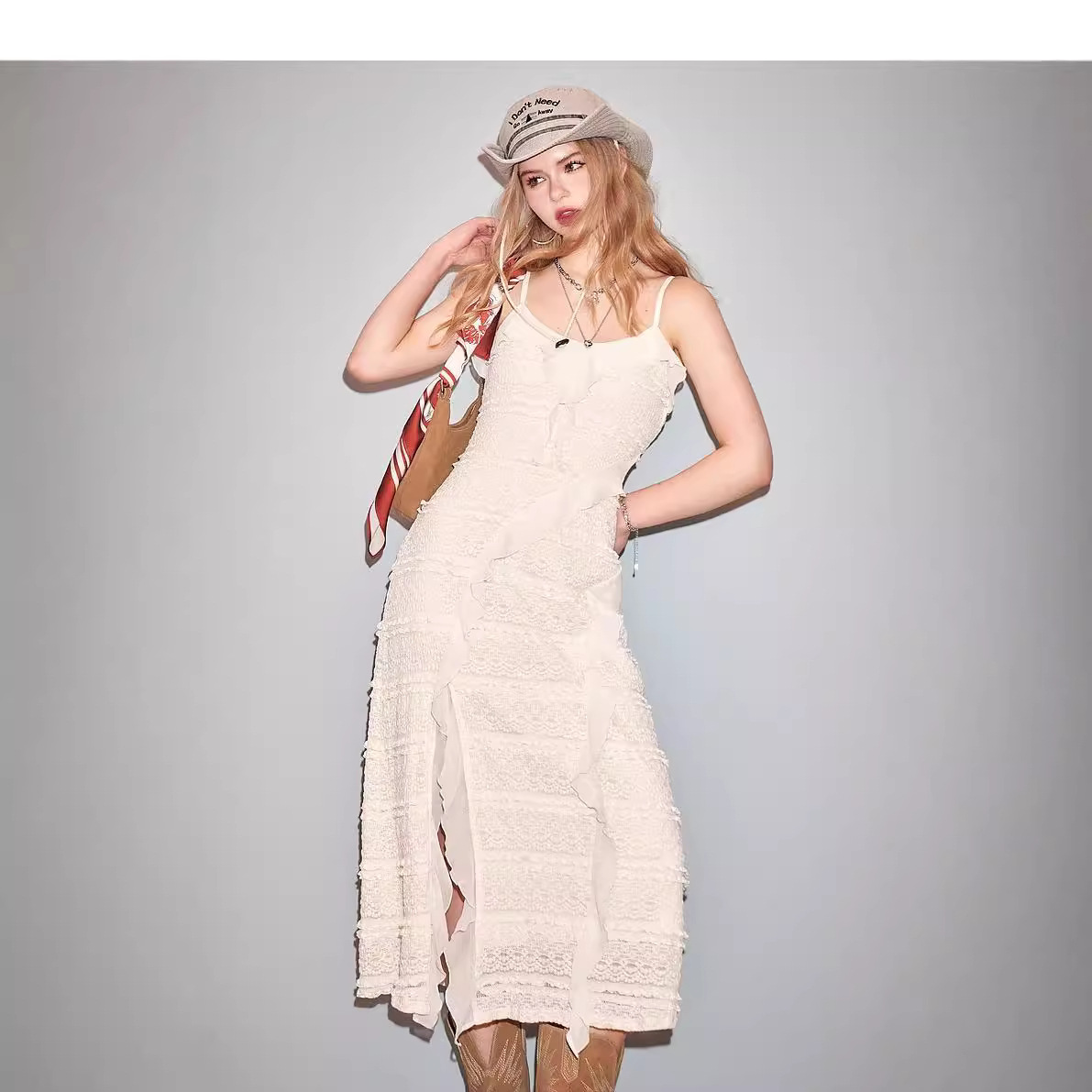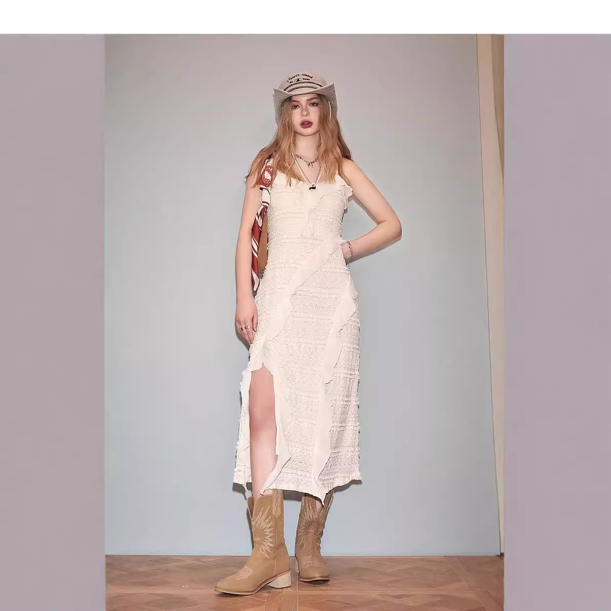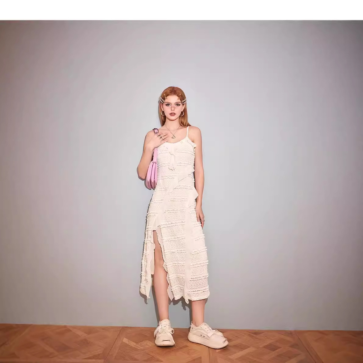 开叉白色吊带连衣裙女新款不规则显瘦度假裙