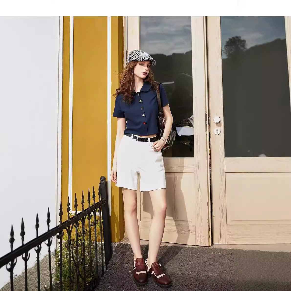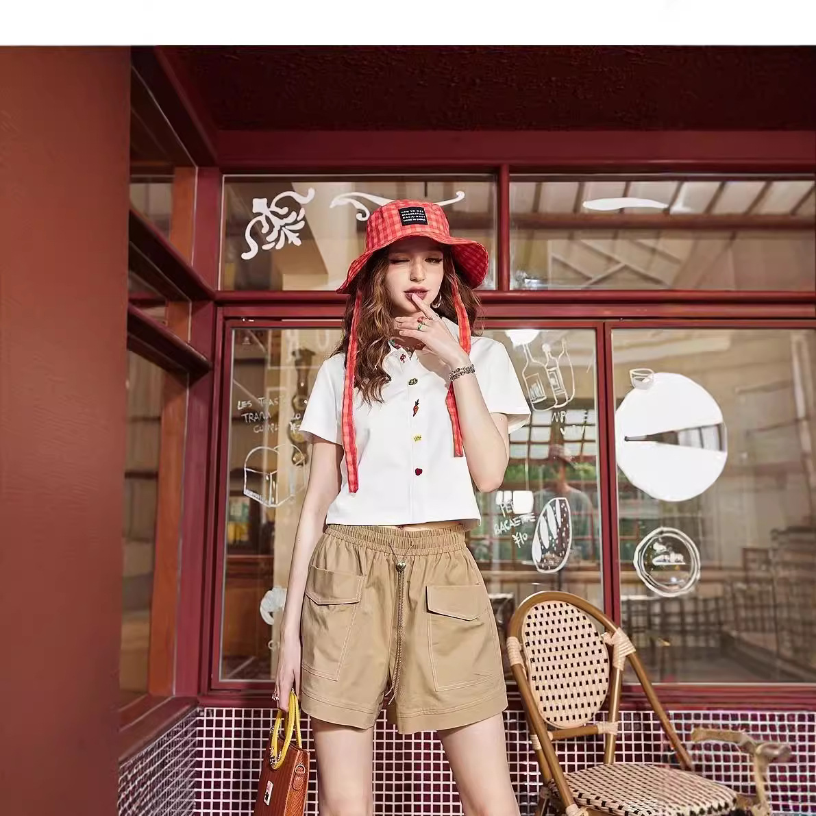 白色Polo领刺绣短袖t恤女夏新款上衣