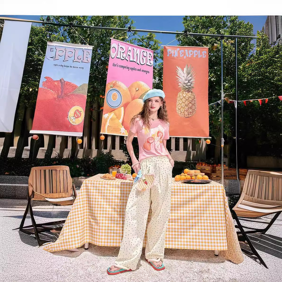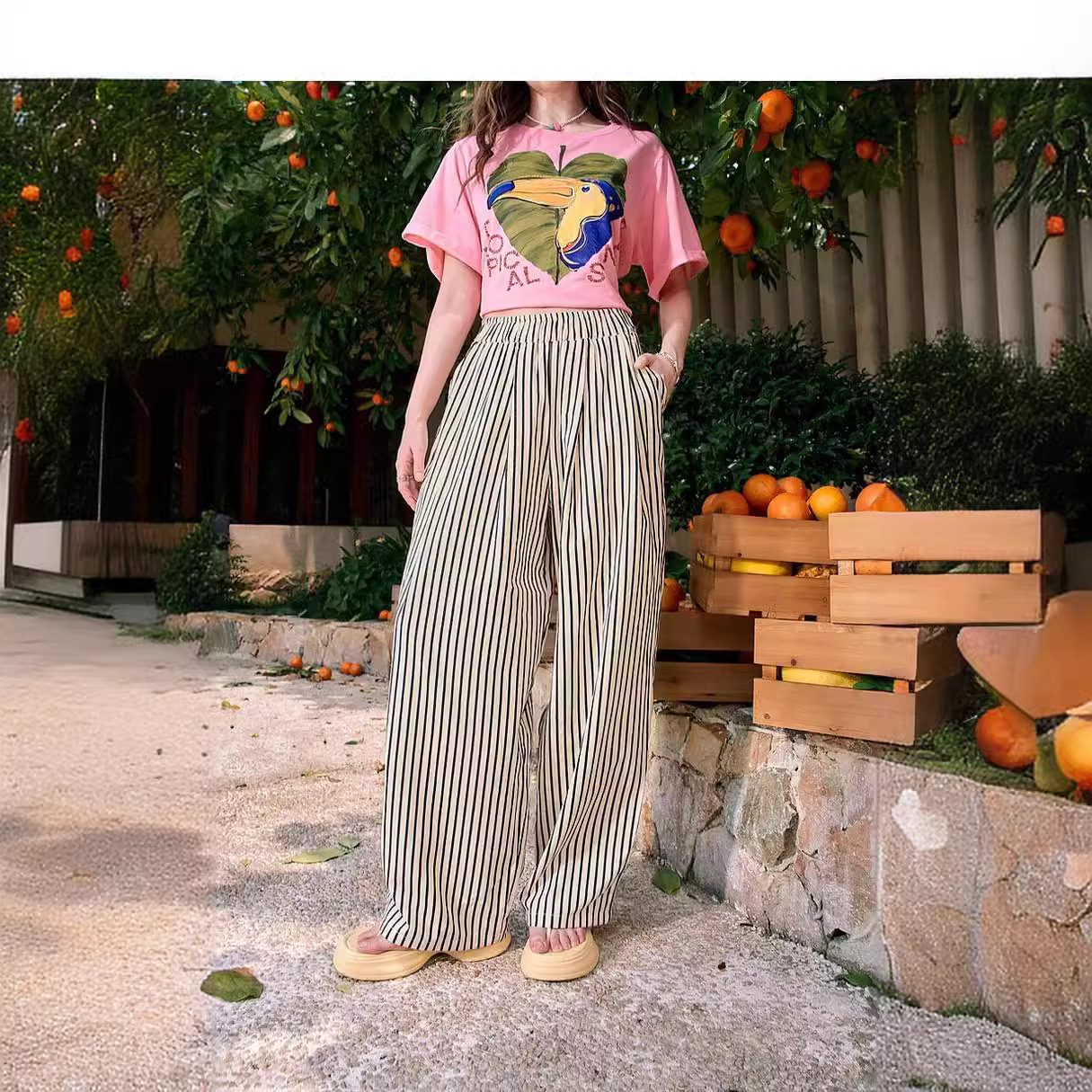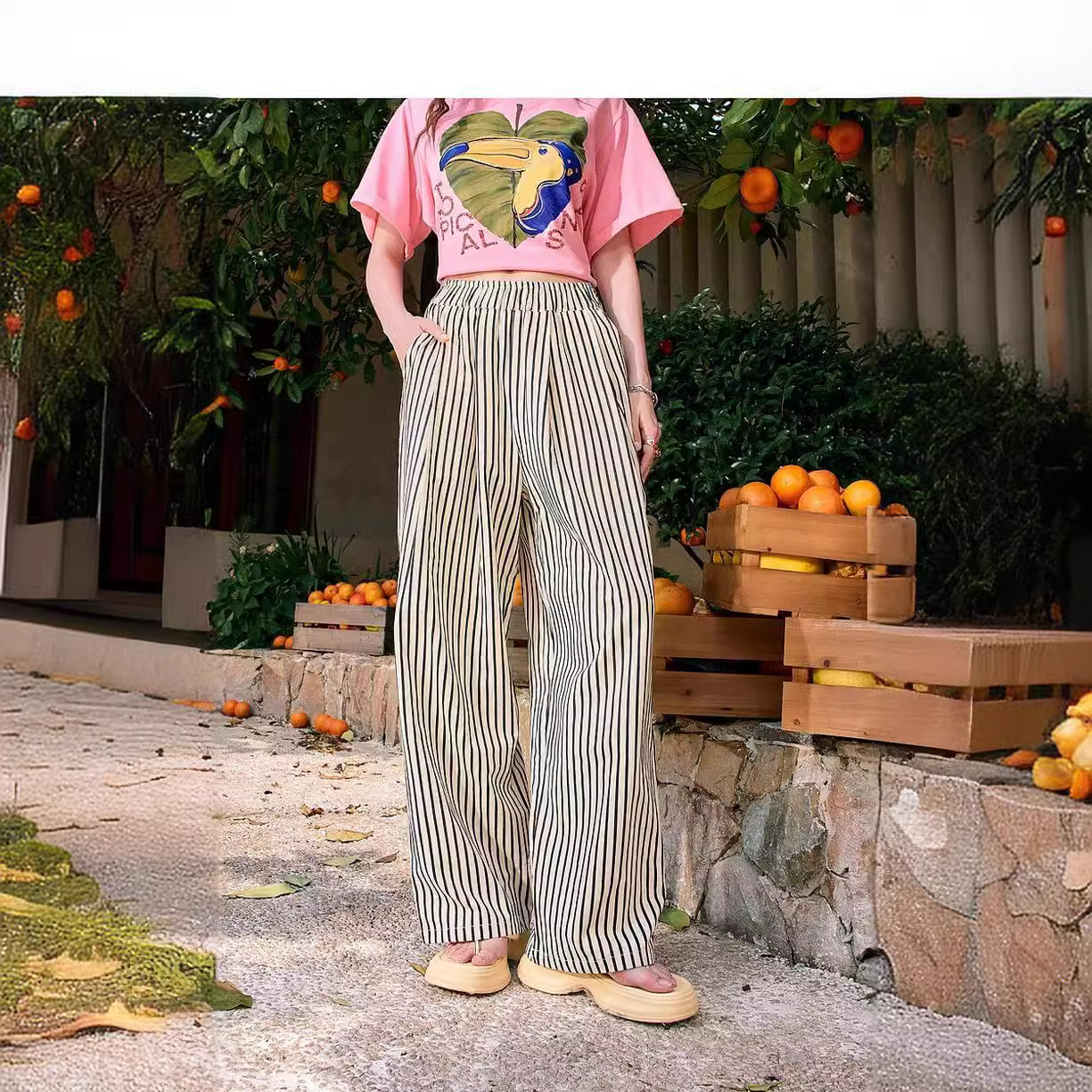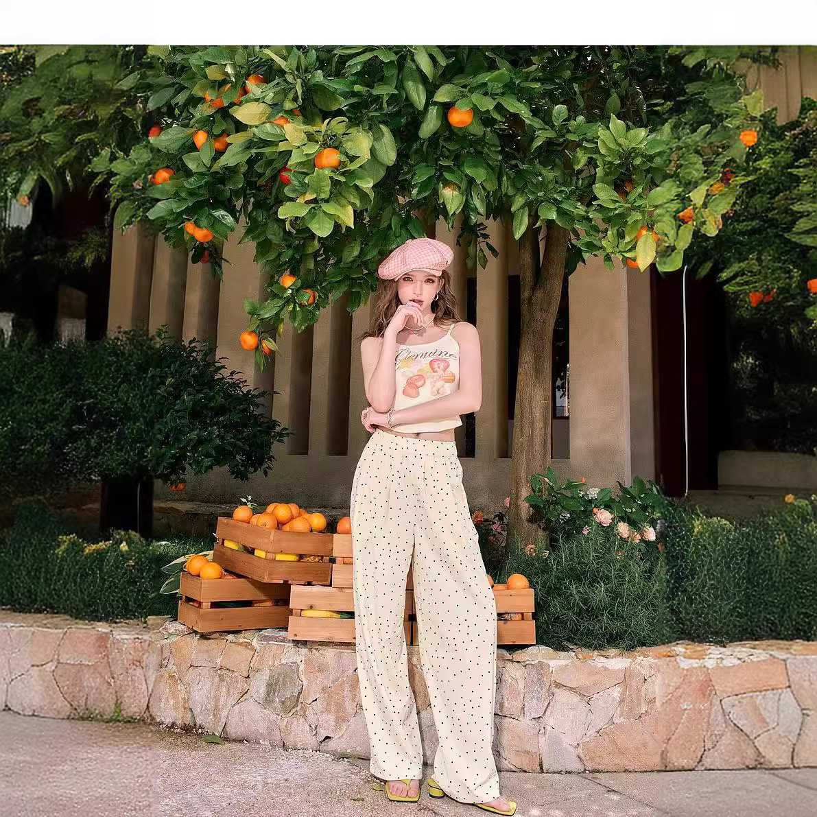 波点条纹阔腿裤女夏季新款宽松显瘦休闲直筒裤子