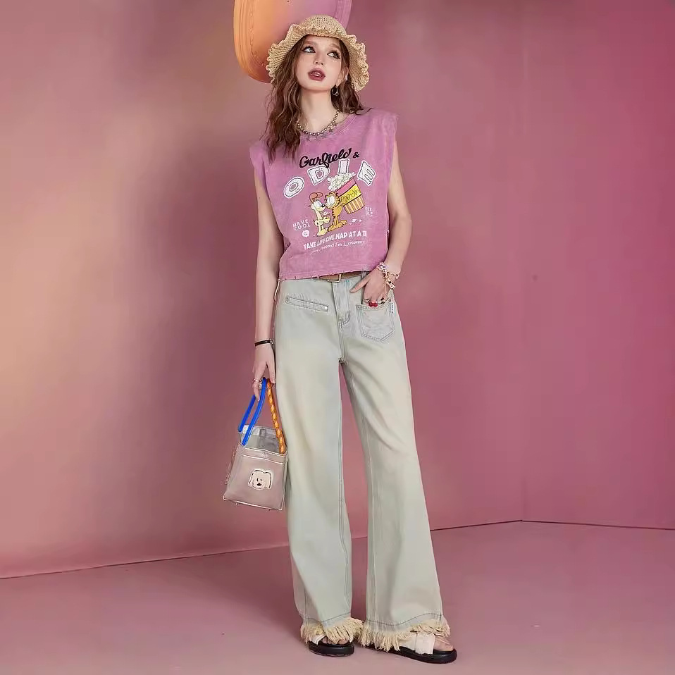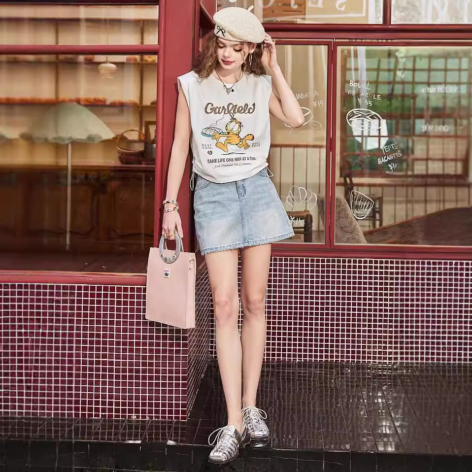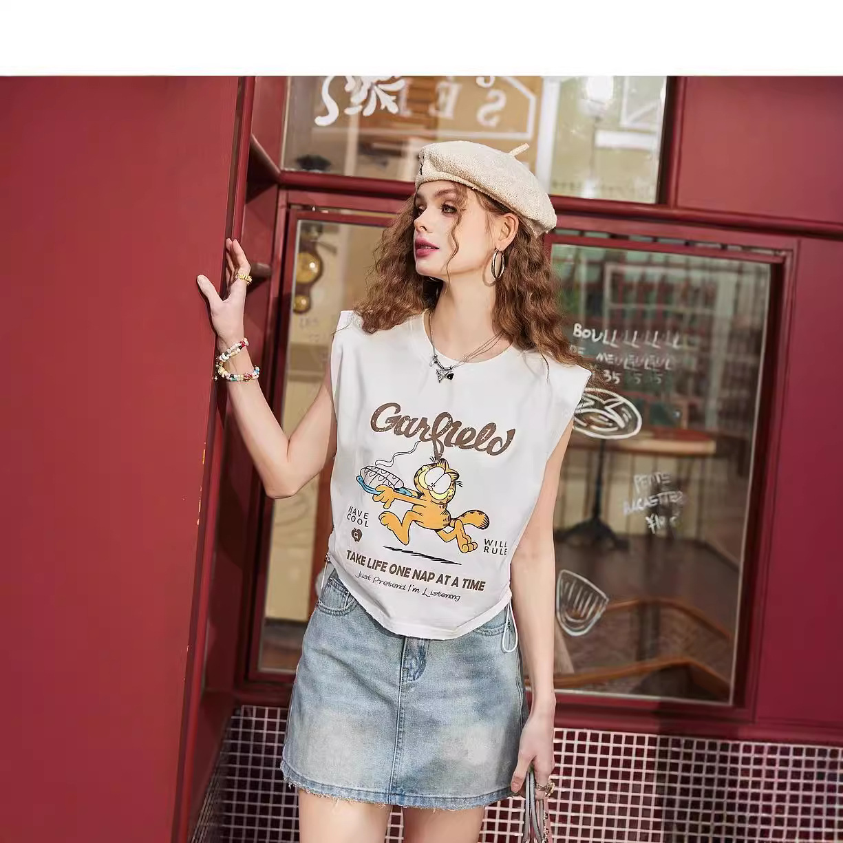 纯棉复古无袖t恤女夏季新宽松百搭上衣