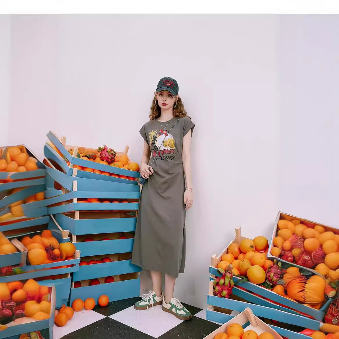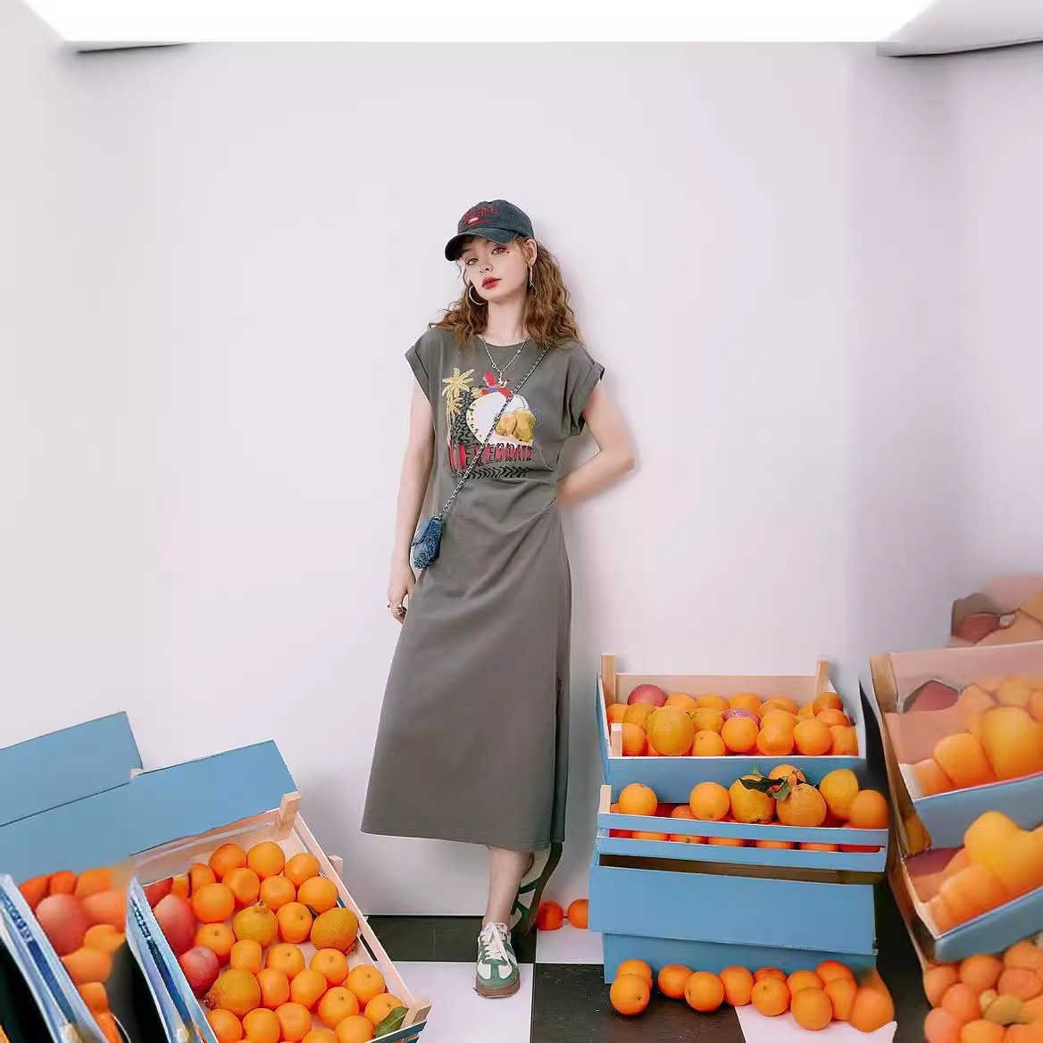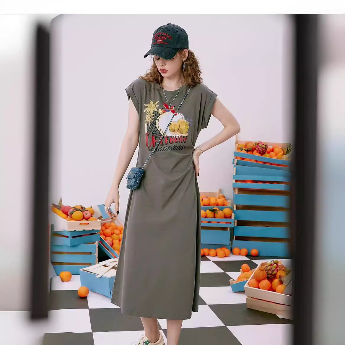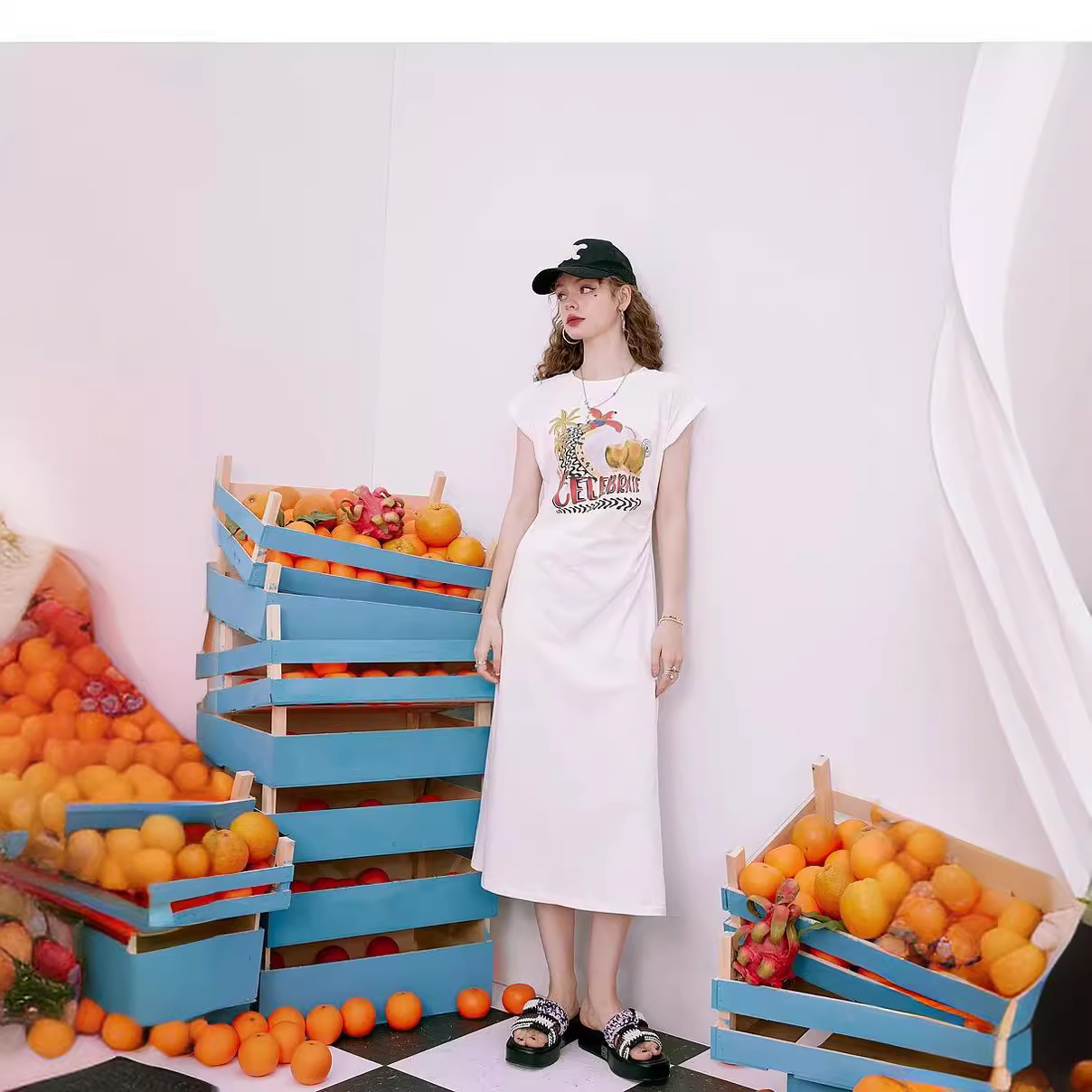 白色t恤连衣裙女夏季新款印花修身设计感休闲裙子