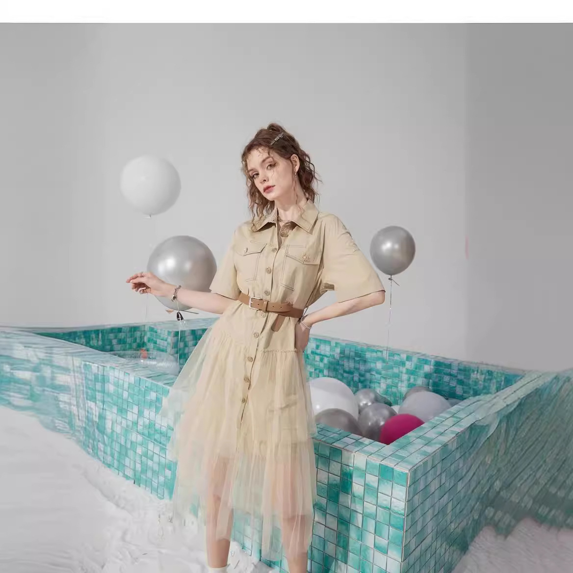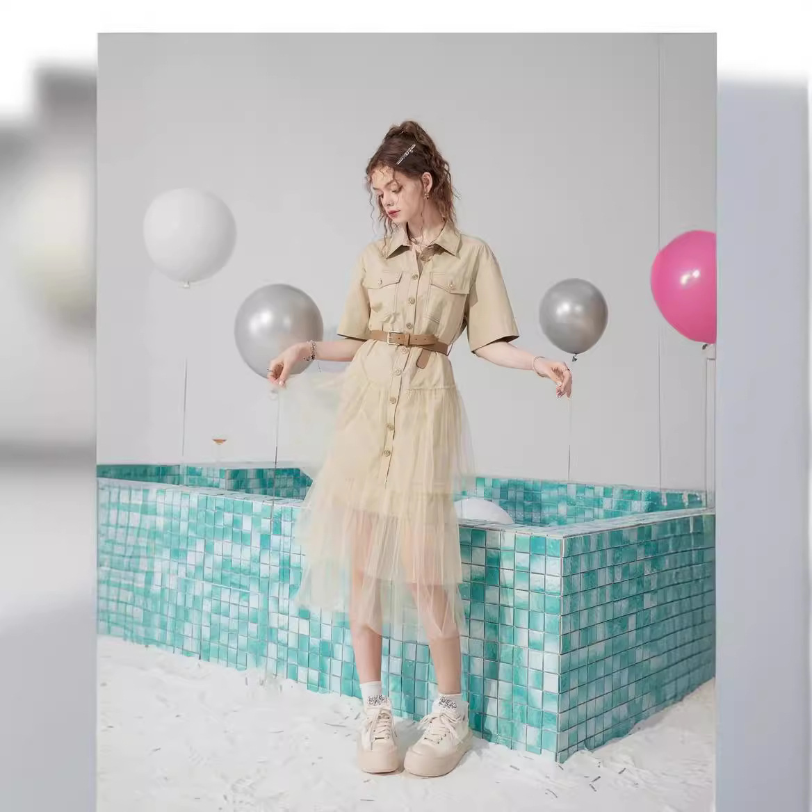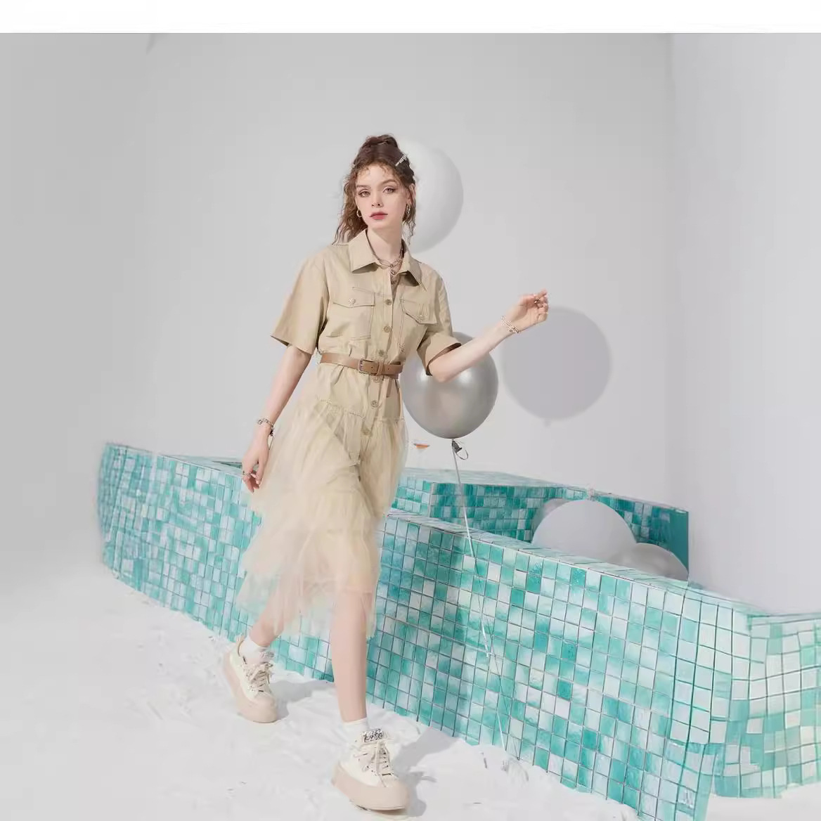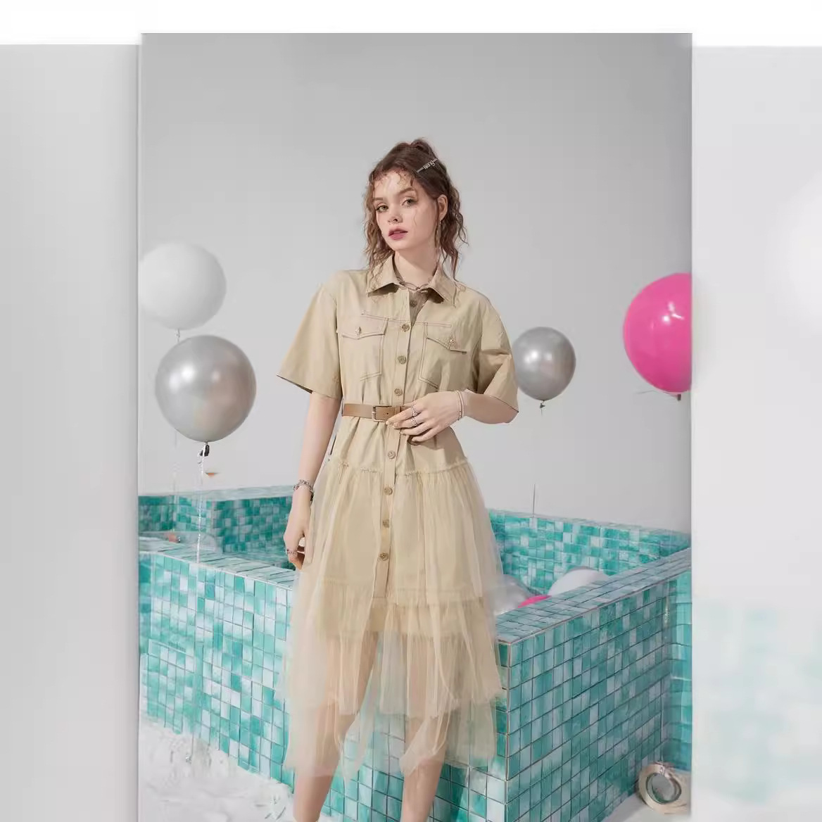 衬衫连衣裙女夏季新款工装修身显瘦裙子